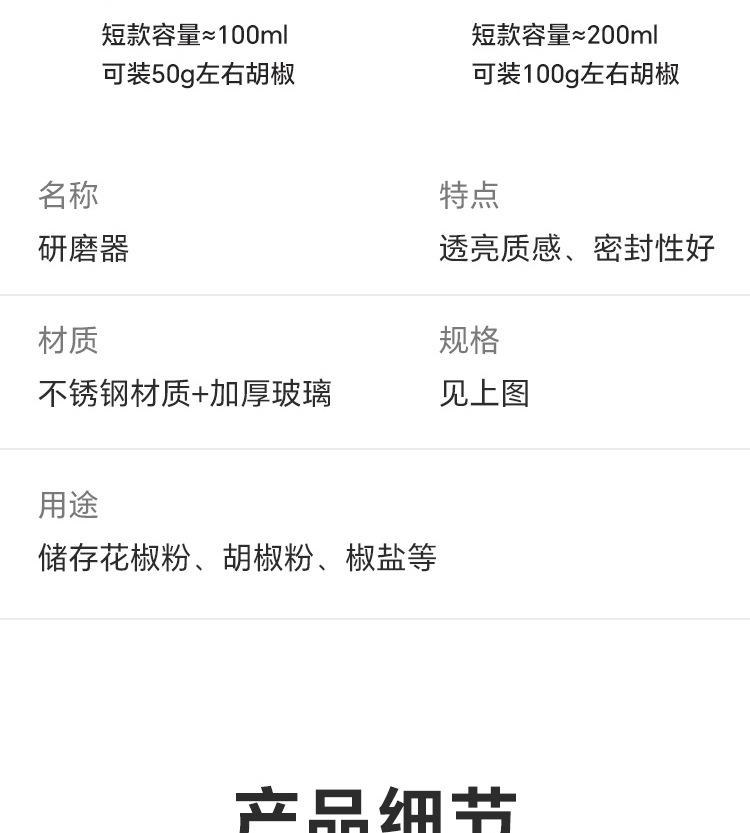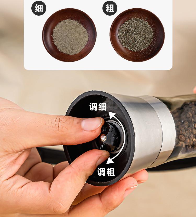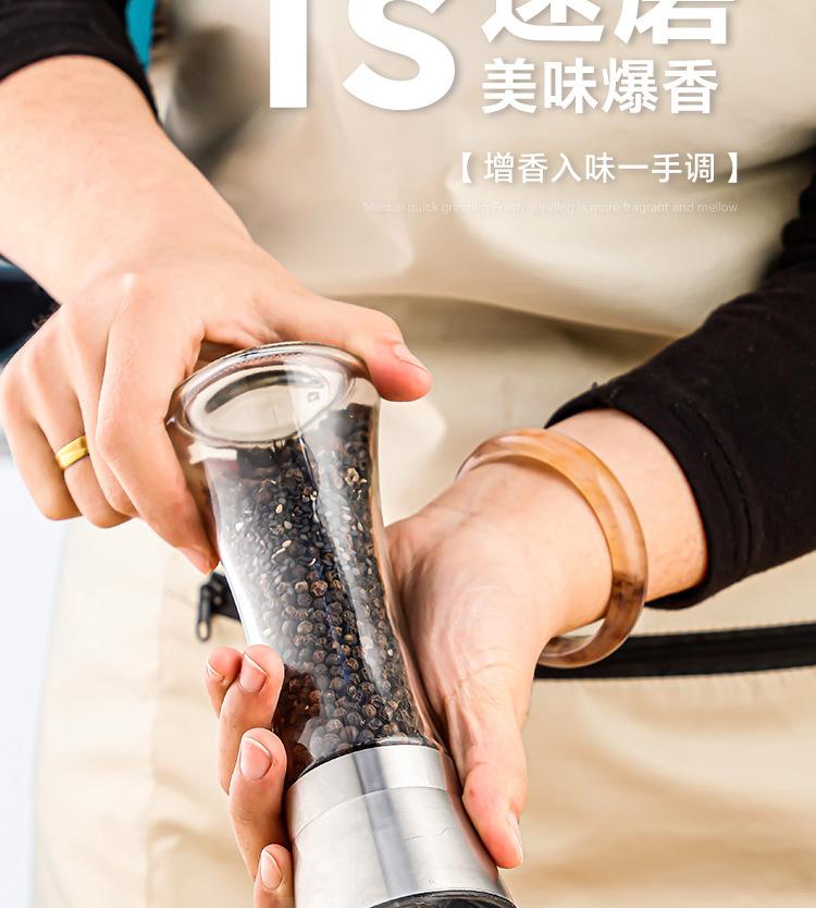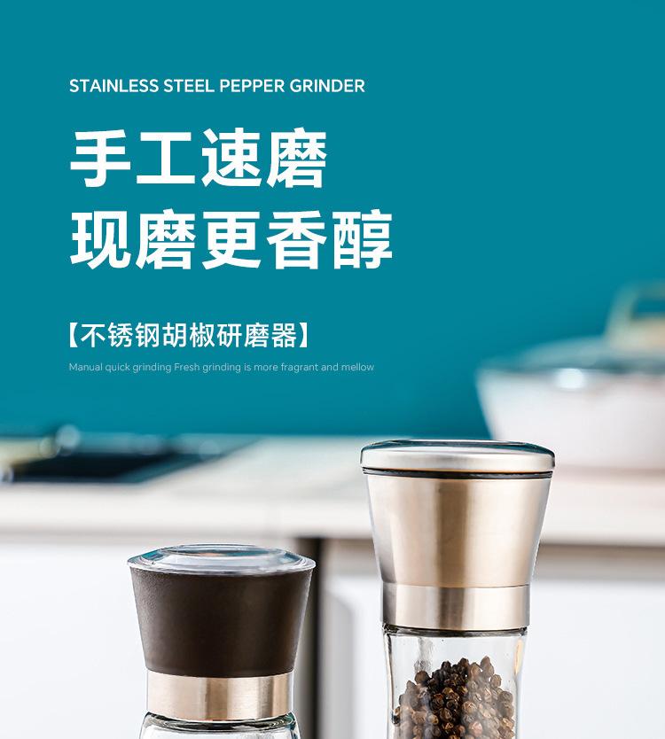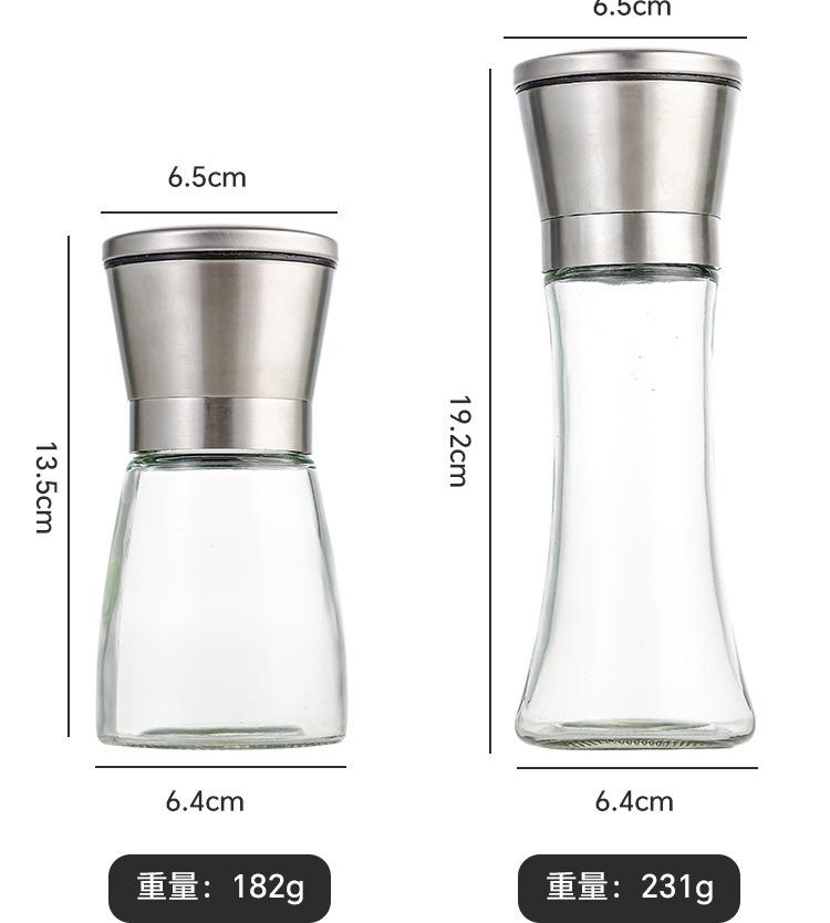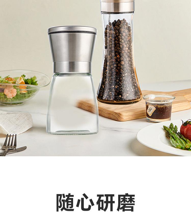 Molinillo de acero inoxidable, botella de molienda manual, botella de condimento de vidrio para el hogar, molinillo de pimienta, suministros de cocina, botella de condimento