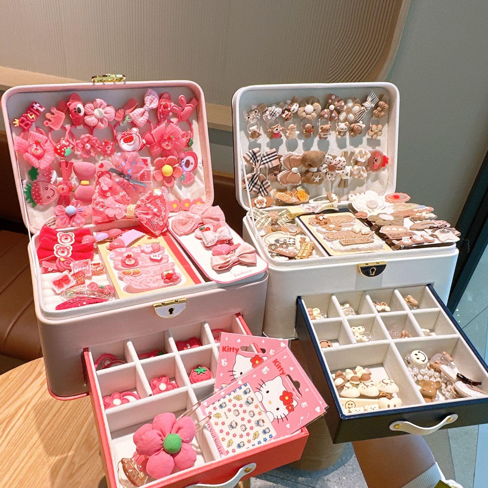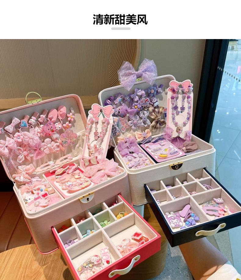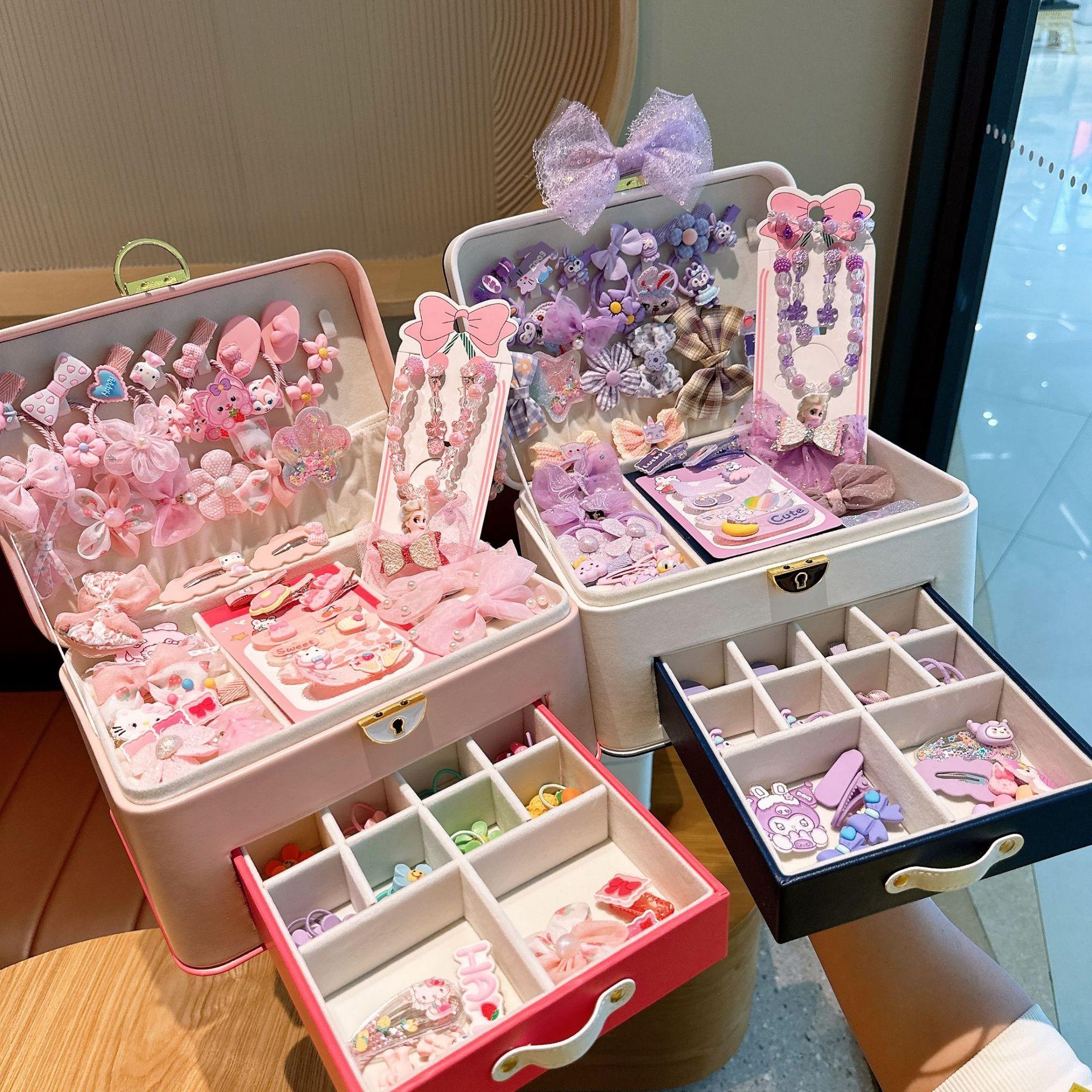 Conjunto Caixa de Joias Grampo de Cabelo Infantil Acessórios de Cabelo de Princesa Clássicos Faixa de Cabelo Grampo de Cabelo de Aniversário para Menininha Caixa de Presente de Adorno de Cabeça de Bebê