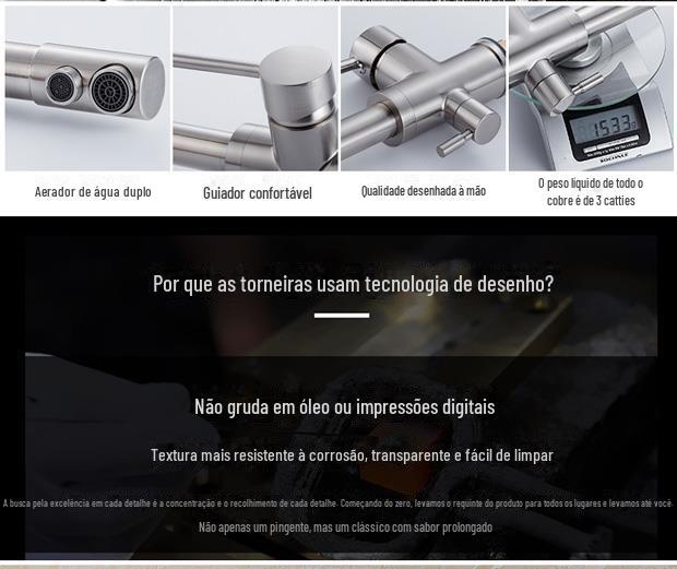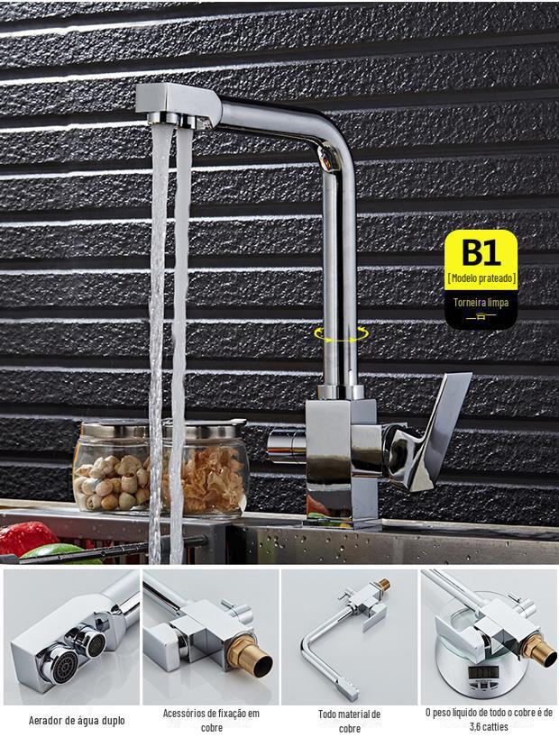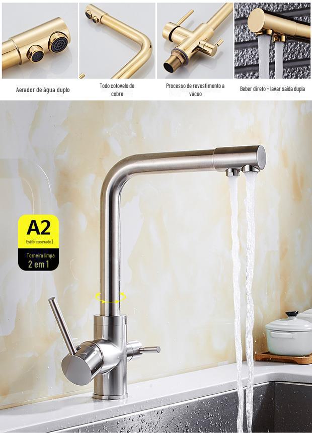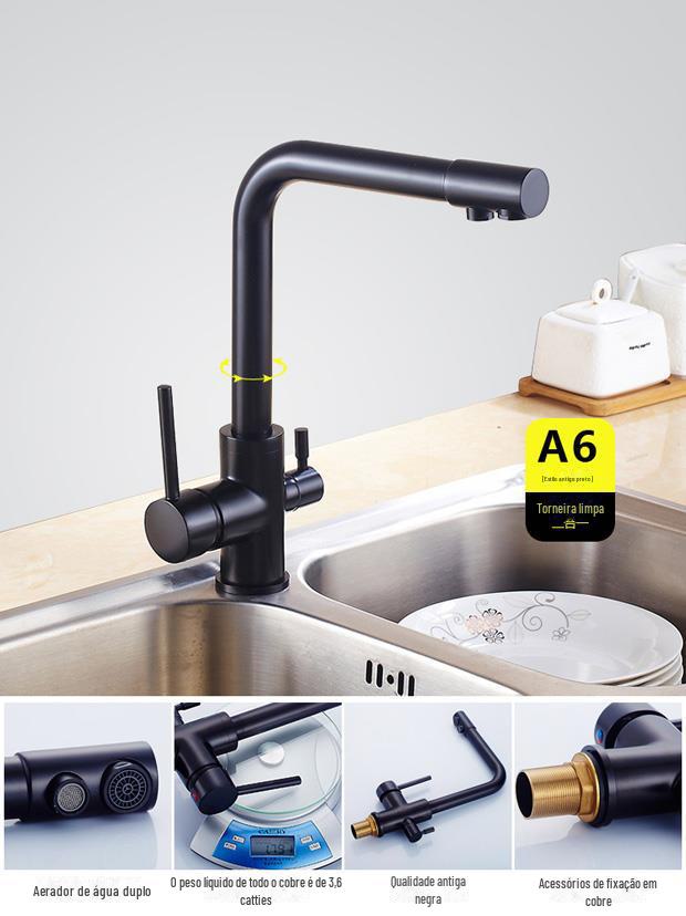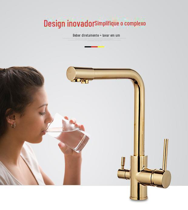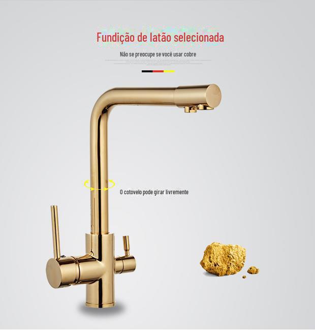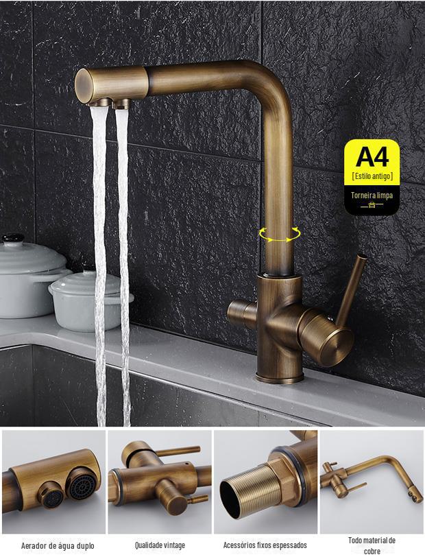 Torneira Quente e Fria de Fábrica Transfronteiriça Purificador de Água Torneira Giratória de Cozinha Toda em Cobre Água Potável Direta Torneira de Pia