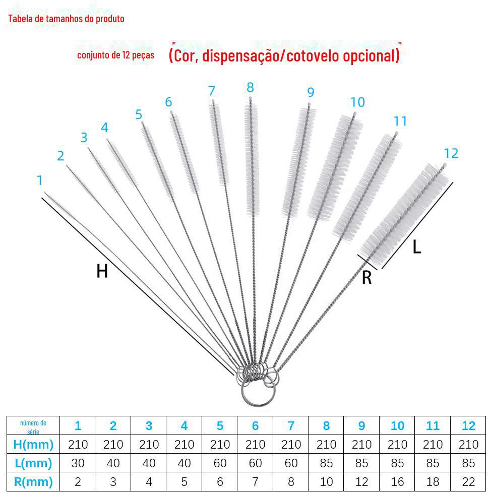 Escova de Limpeza de Aço Inoxidável Conjunto de 13 Peças, Escova para Canudos, Escova para Tampa de Copo, Escova de Limpeza para Tubo de Ensaio, Escova para Fendas, Escova para Ferramentas, Versão com Dispensador