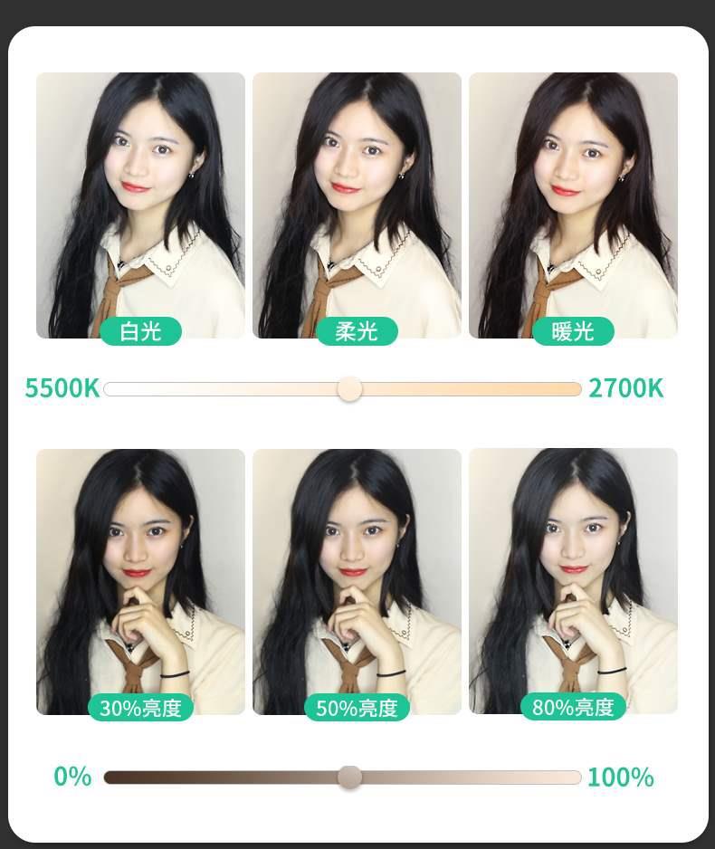 Small tripod + 16cm fill light, Clip + 16cm fill light, Clip + 16cm fill light + camera, Desktop base + 16cm f...