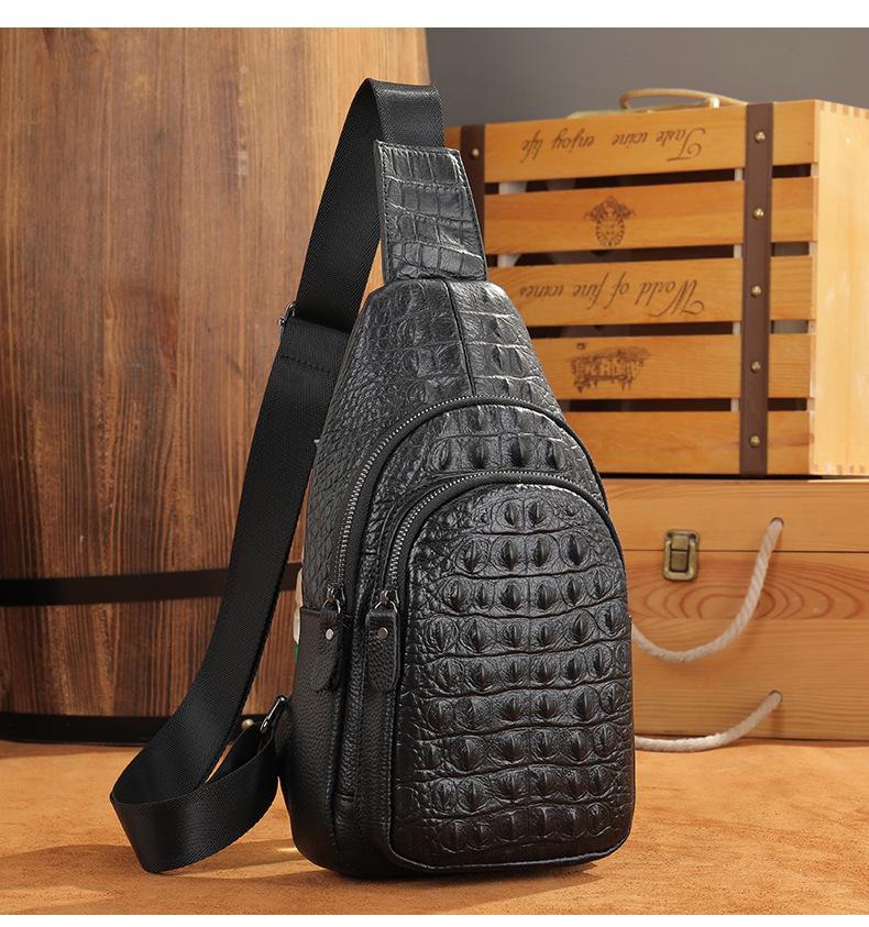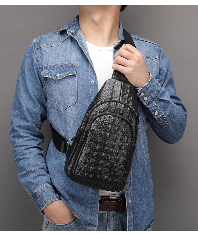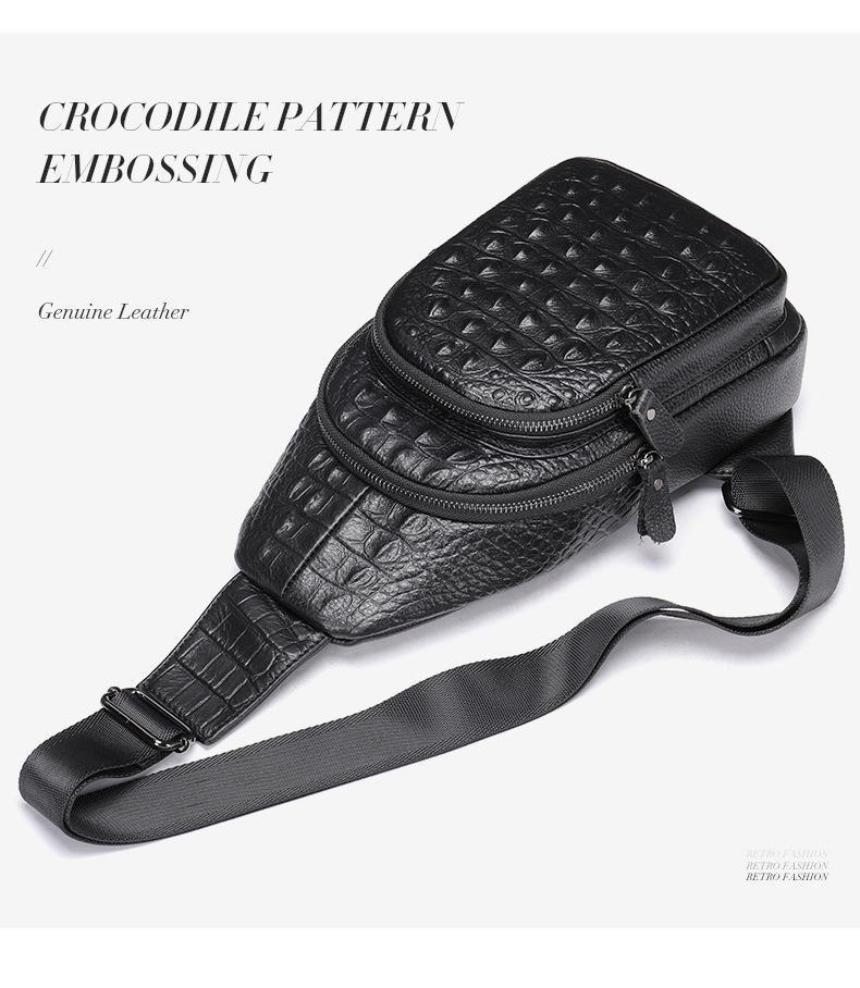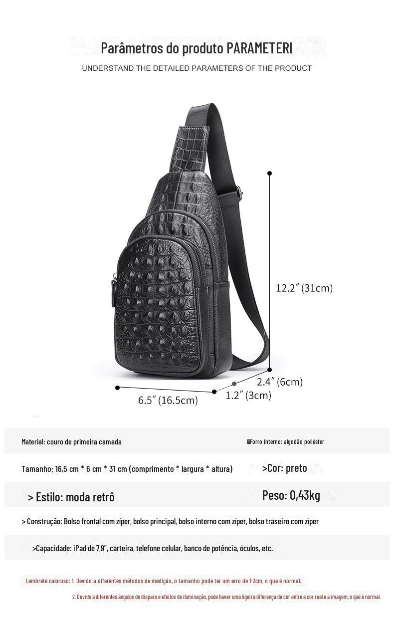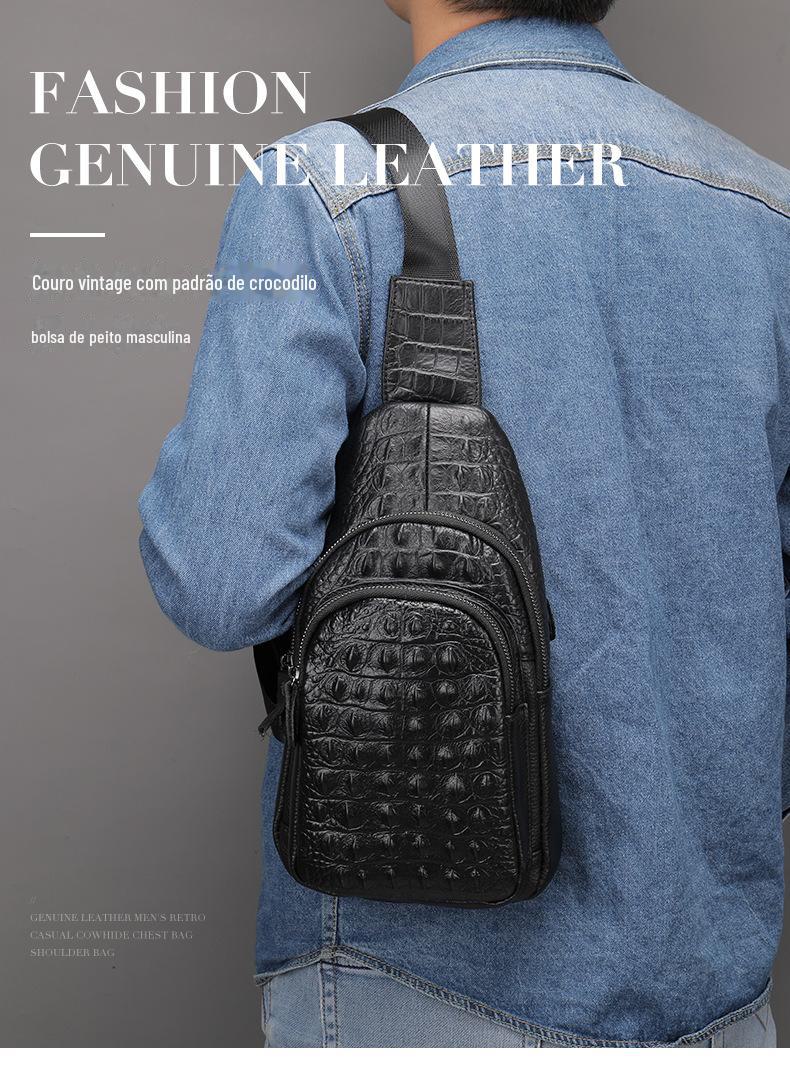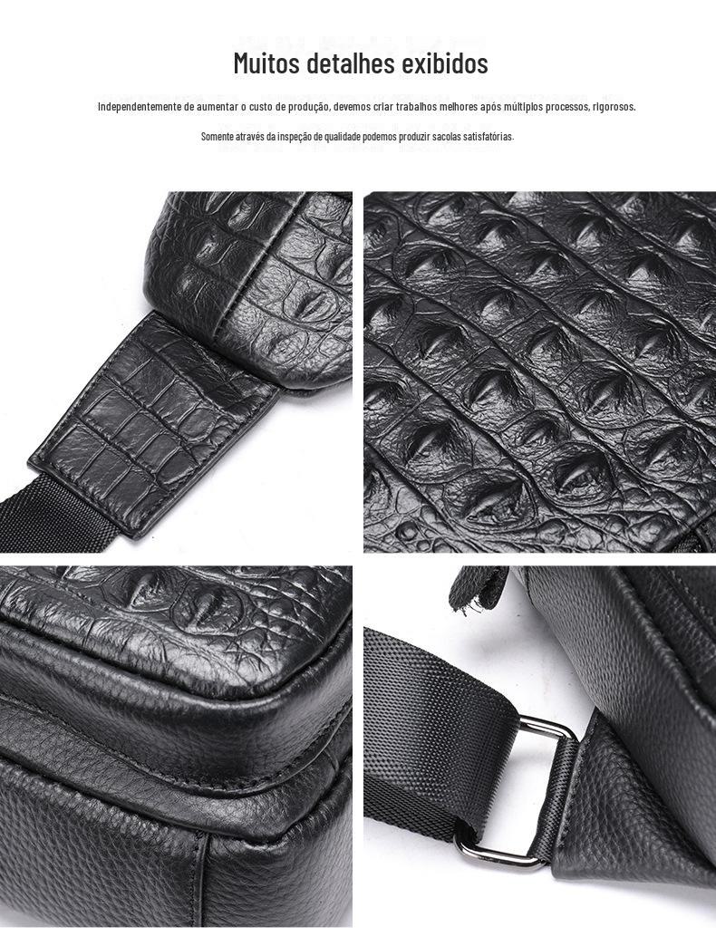 Bolsa de peito masculina de couro vintage com padrão de crocodilo 1311