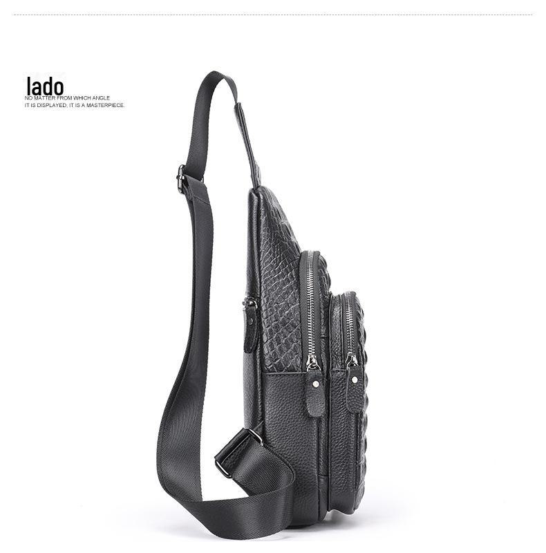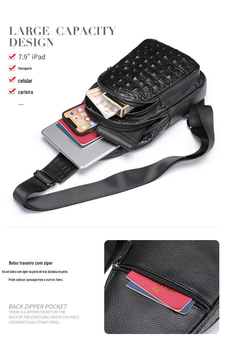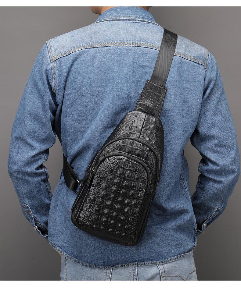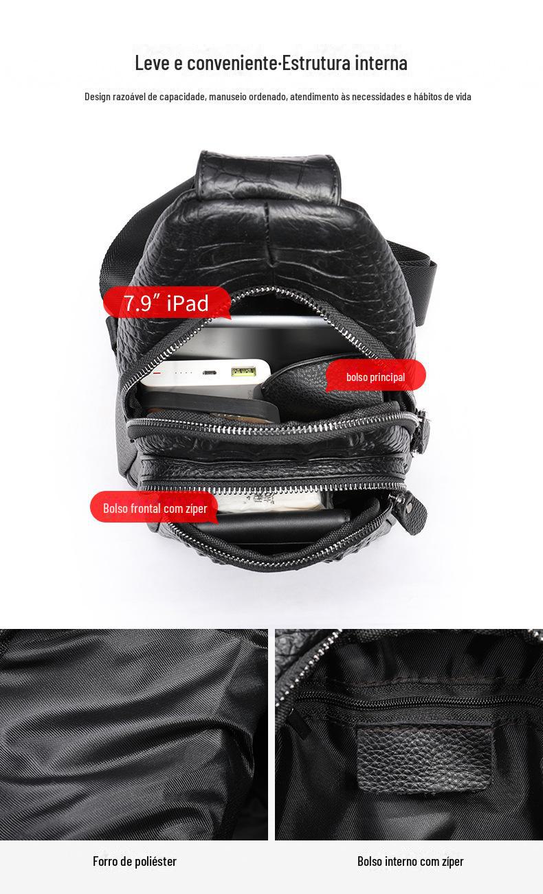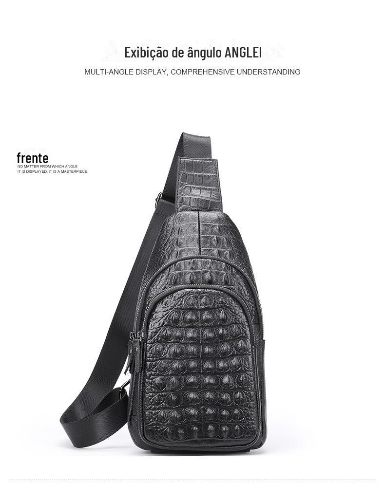 Bolsa de peito masculina de couro vintage com padrão de crocodilo 1311