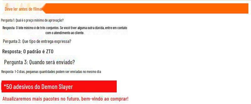 Prazo de entrega: Todos os pedidos serão enviados às 17h todos os dias. Pedidos feitos após as 17h serão enviados no dia seguinte. Por favor, comunique-se com o pessoal de atendimento ao cliente para saber o prazo de entrega dos adesivos personalizados.