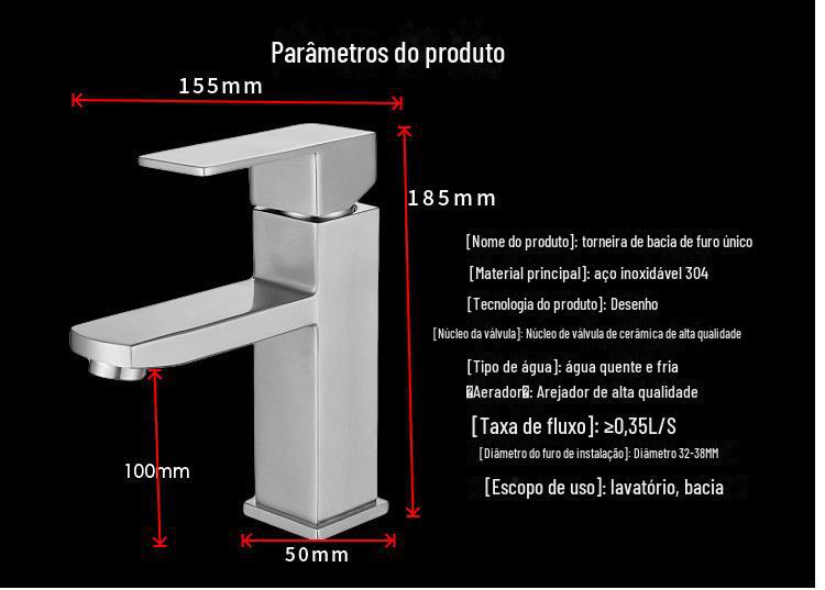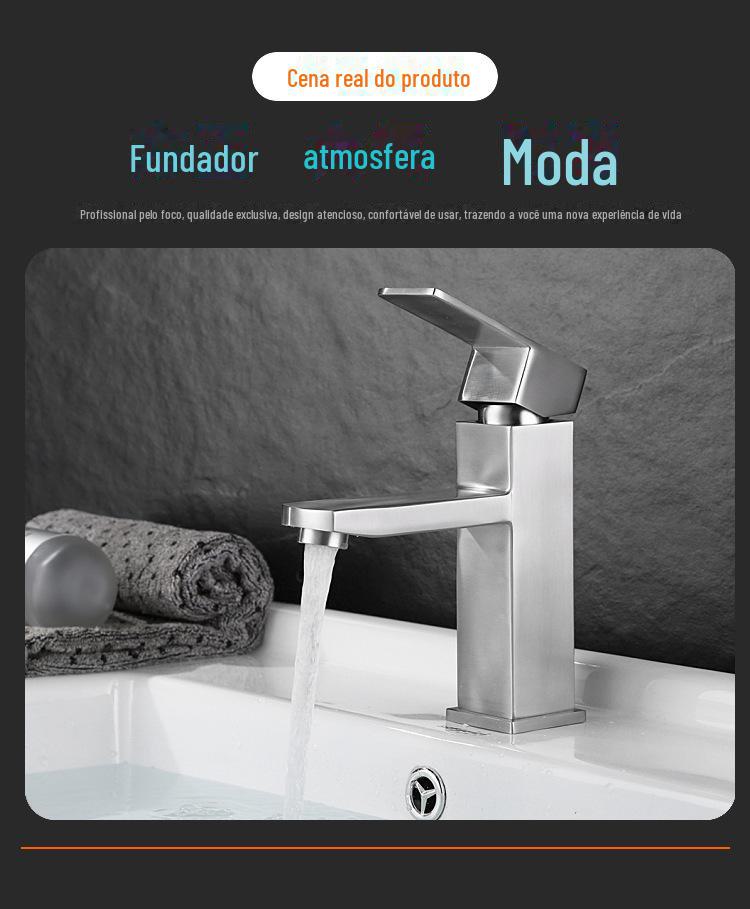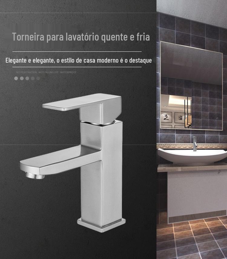 Bacia quadrada curta torneira quente e fria 304 aço inoxidável 19cm quadrado torneira bacia escovada