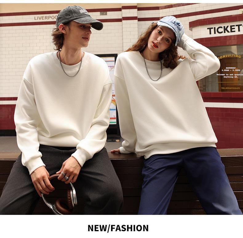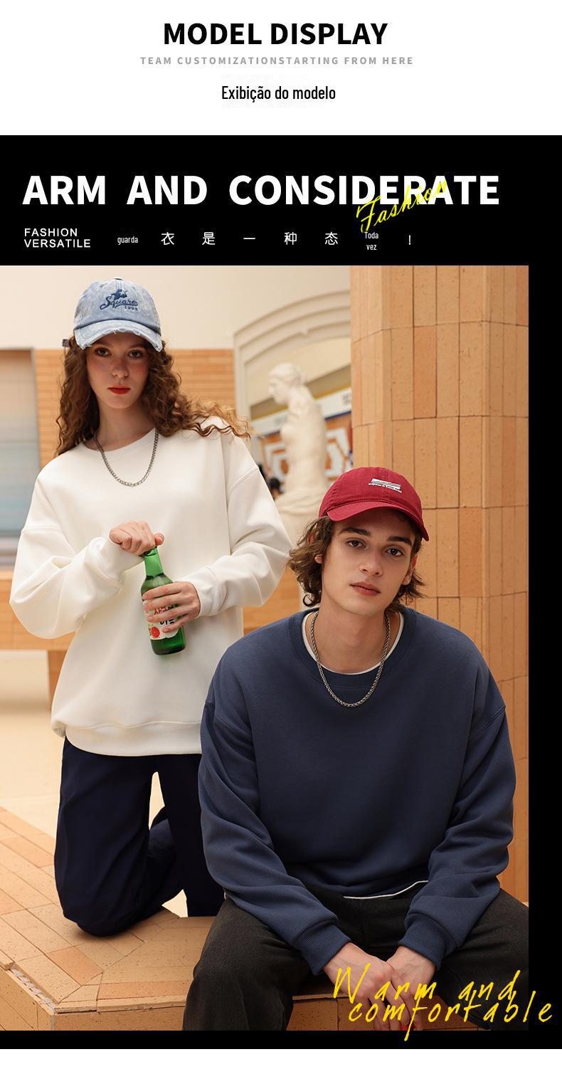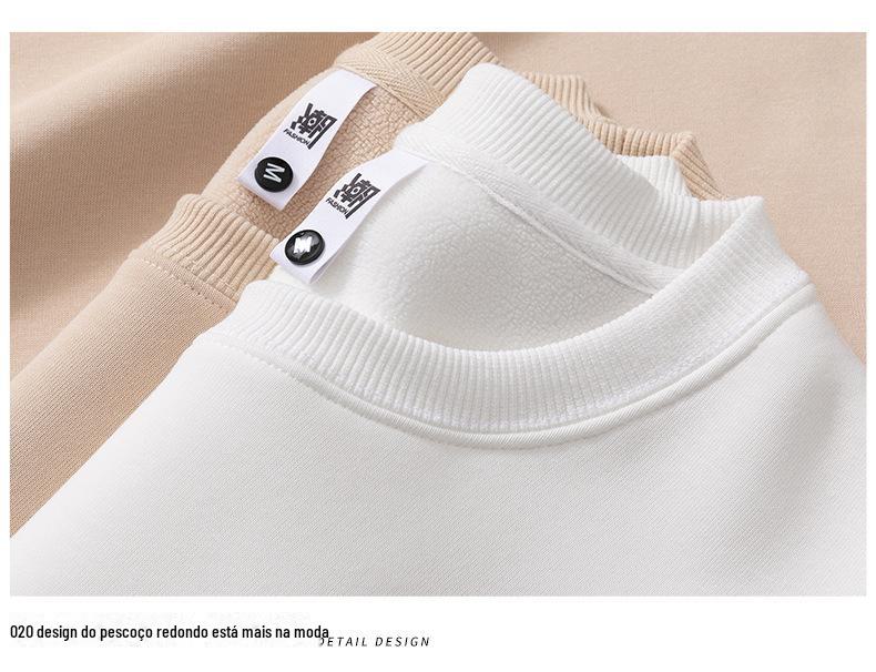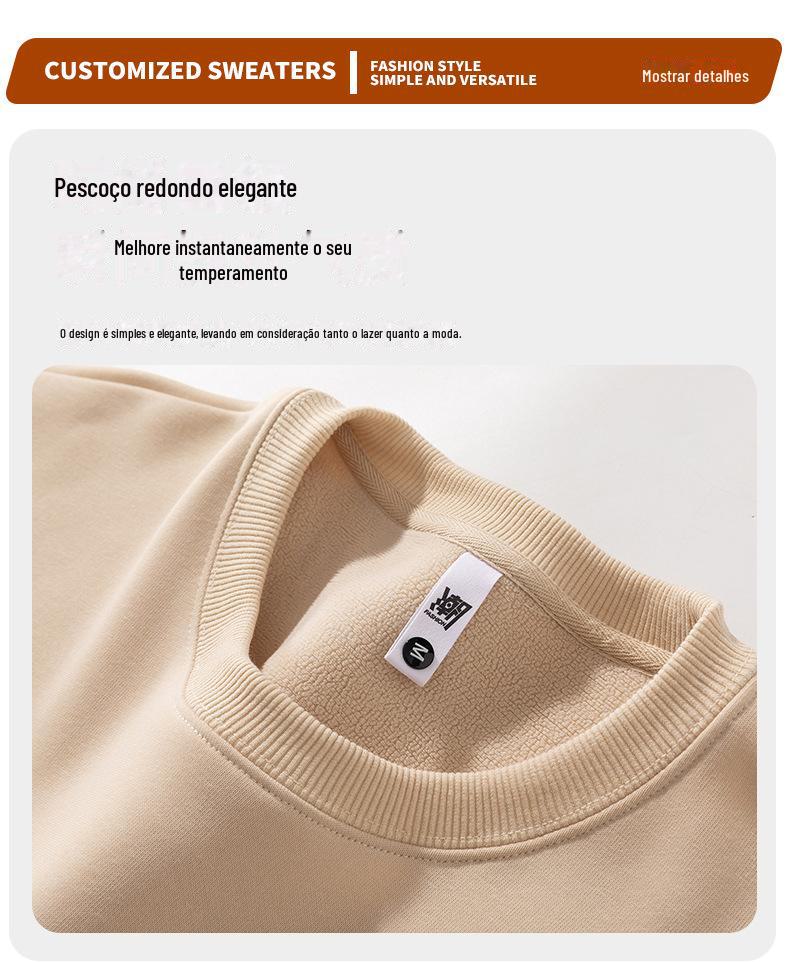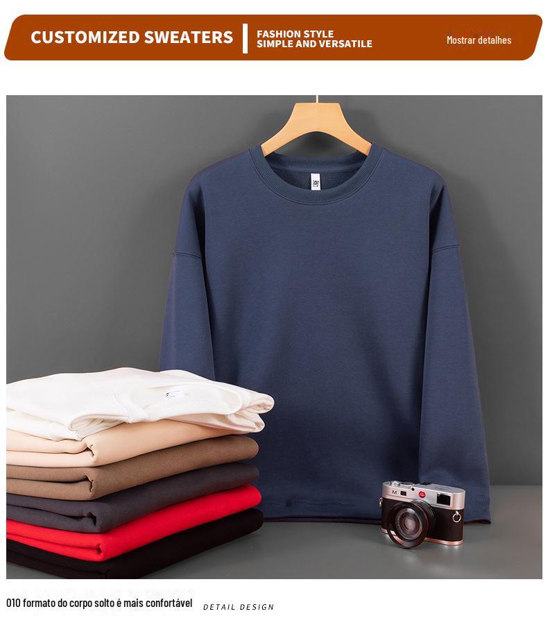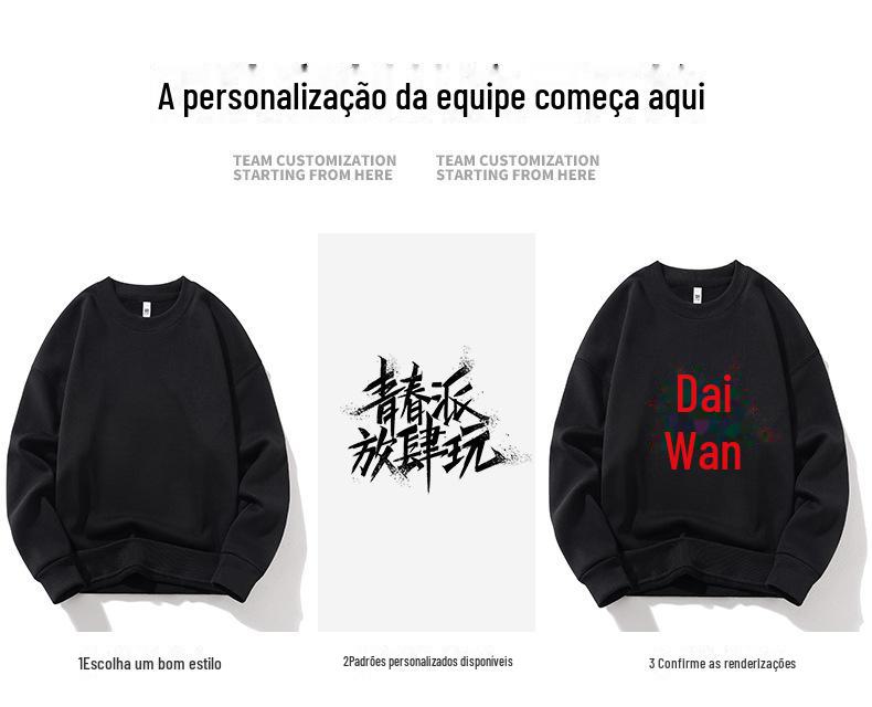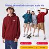 Moletom com logotipo personalizado, estampa de algodão puro, cor sólida, manga comprida, gola redonda, capuz, forro de lã, roupa de trabalho solta, roupa de festa, roupa de classe
