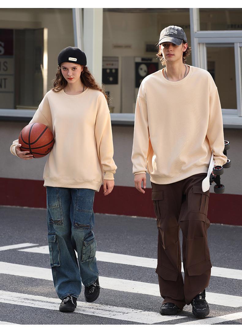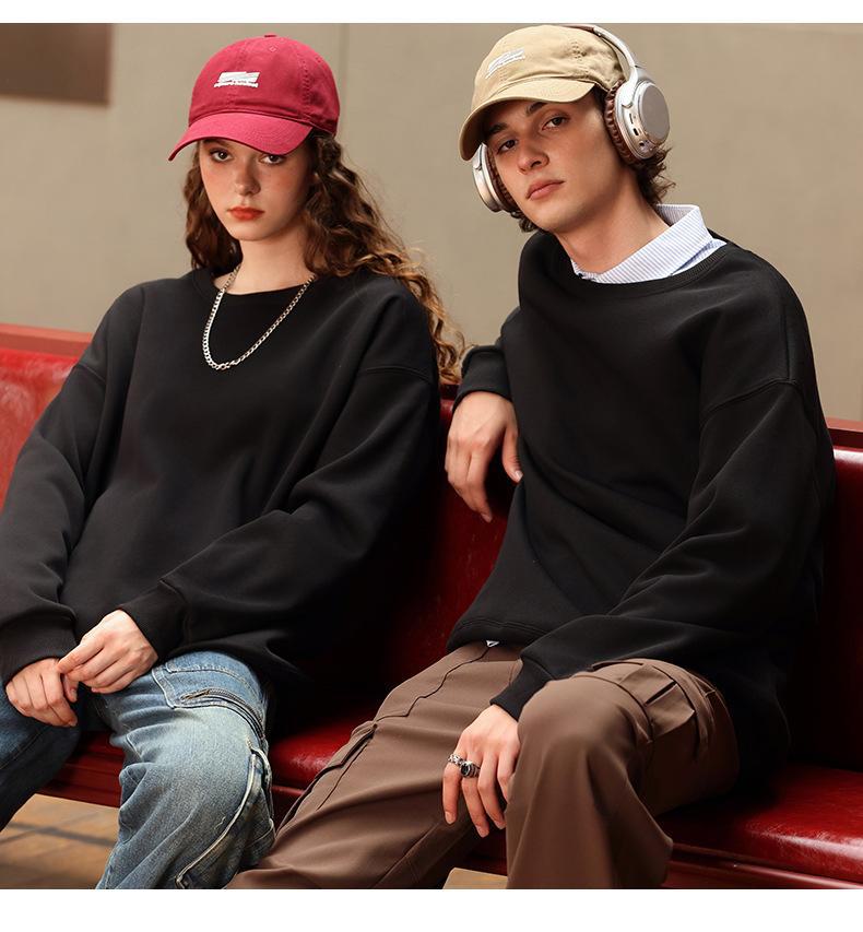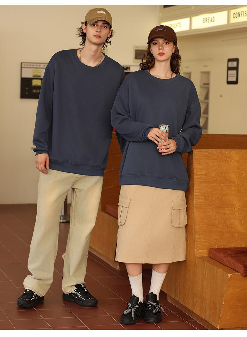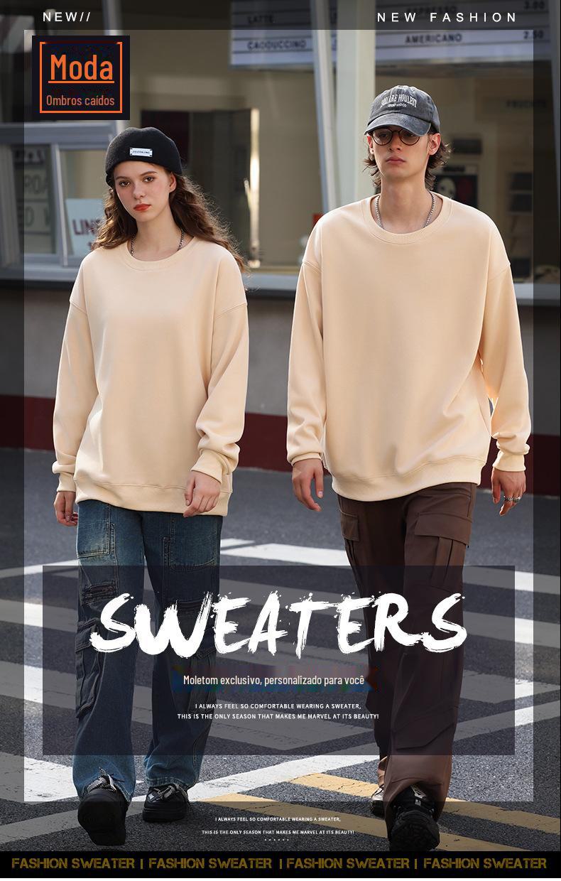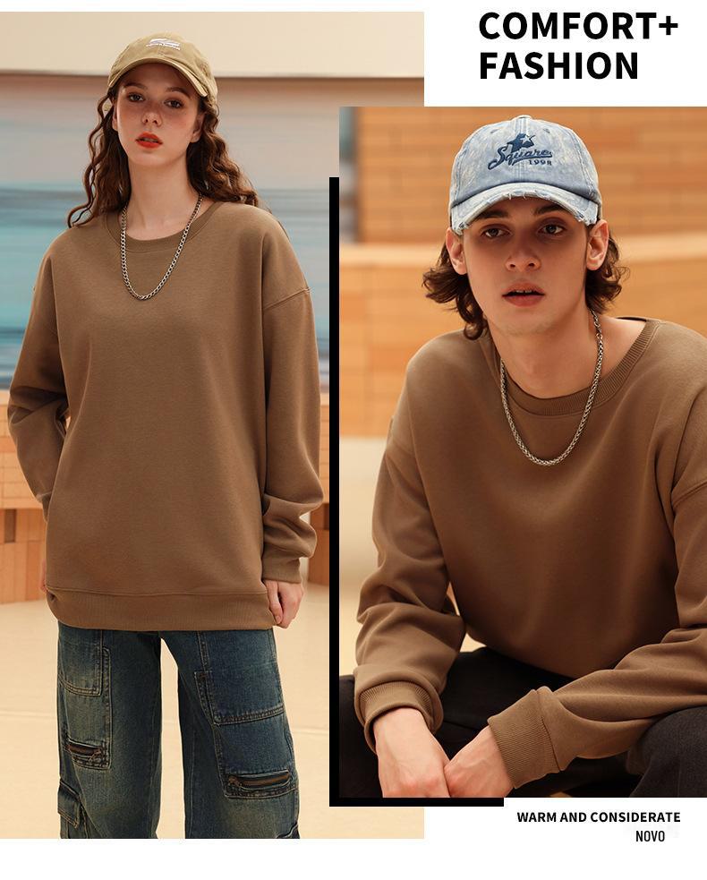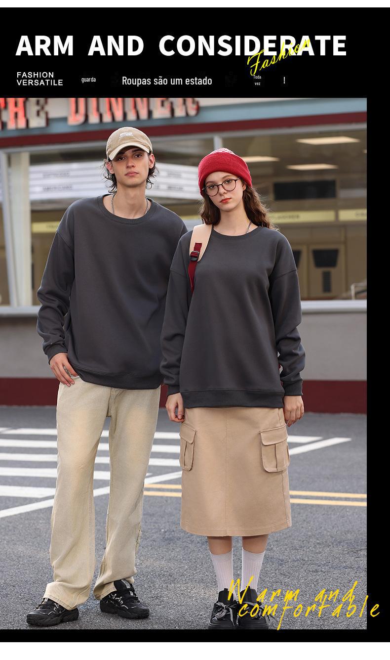 Moletom com logotipo personalizado, estampa de algodão puro, cor sólida, manga comprida, gola redonda, capuz, forro de lã, roupa de trabalho solta, roupa de festa, roupa de classe