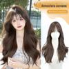 [Estilo]: Cabelo longo e encaracolado com repartição média