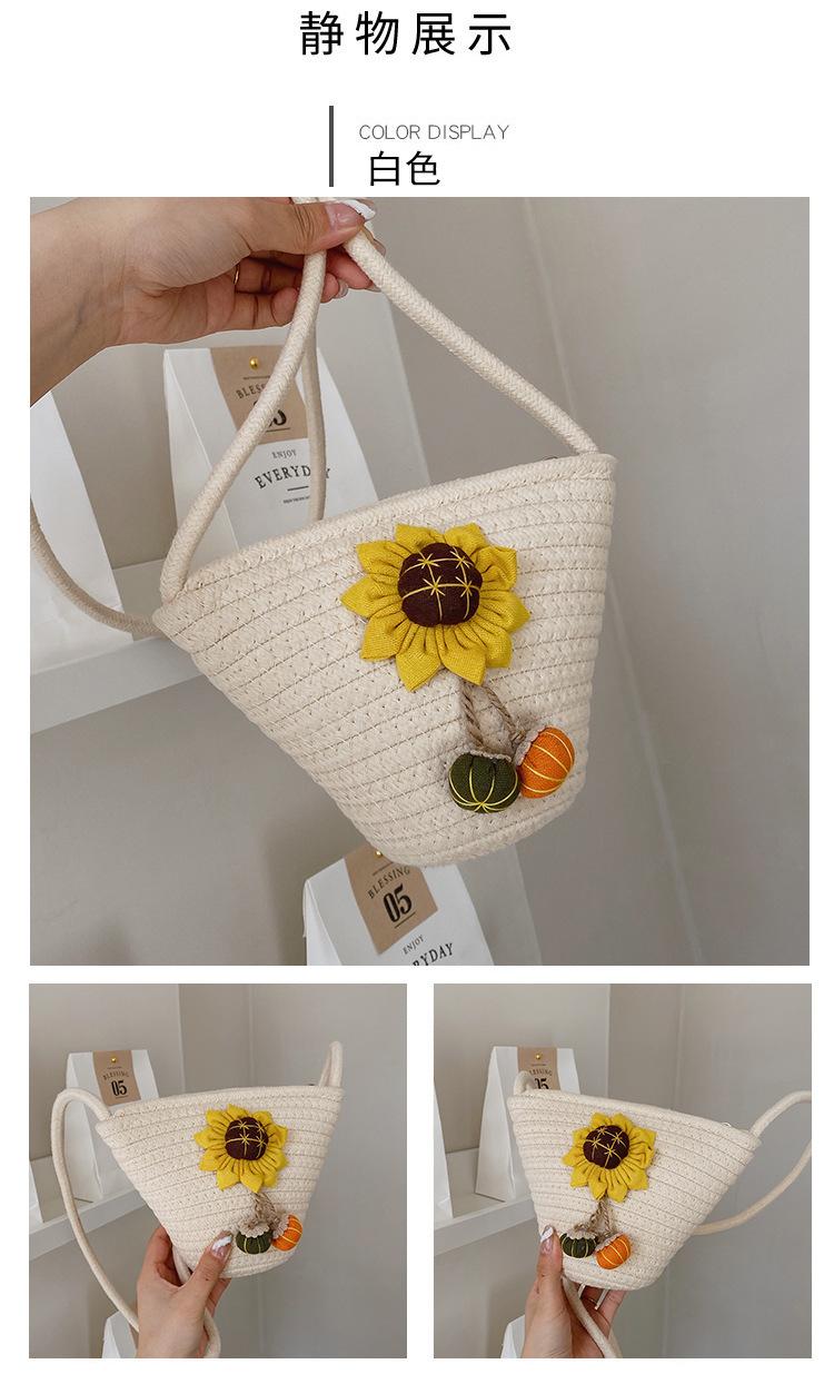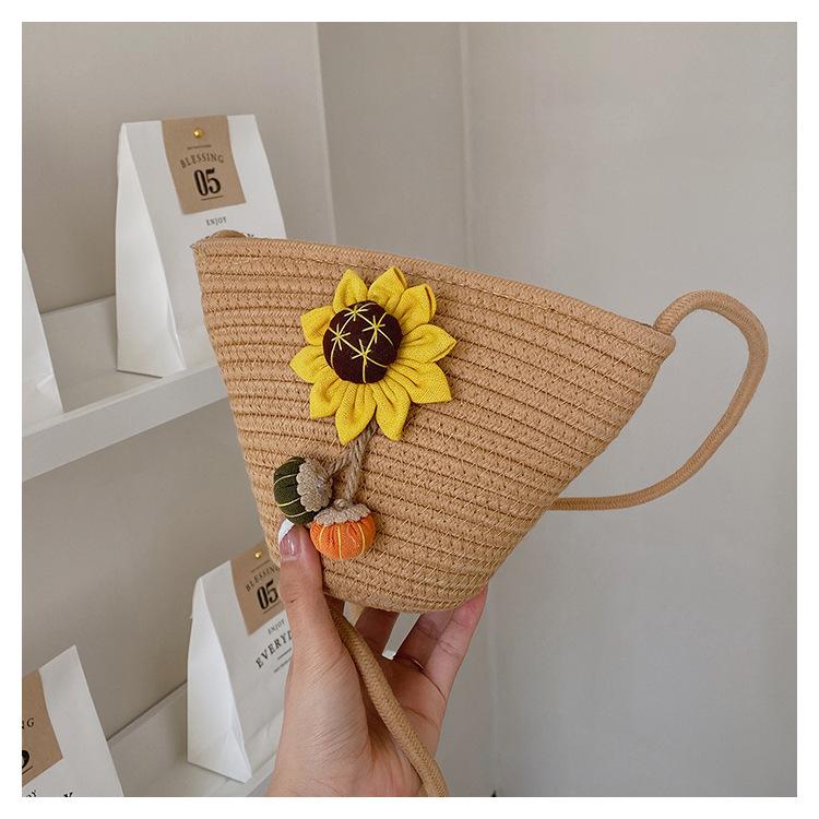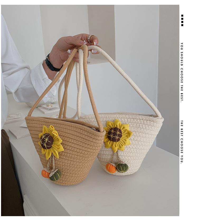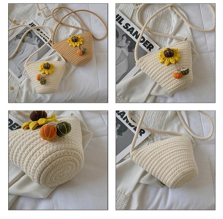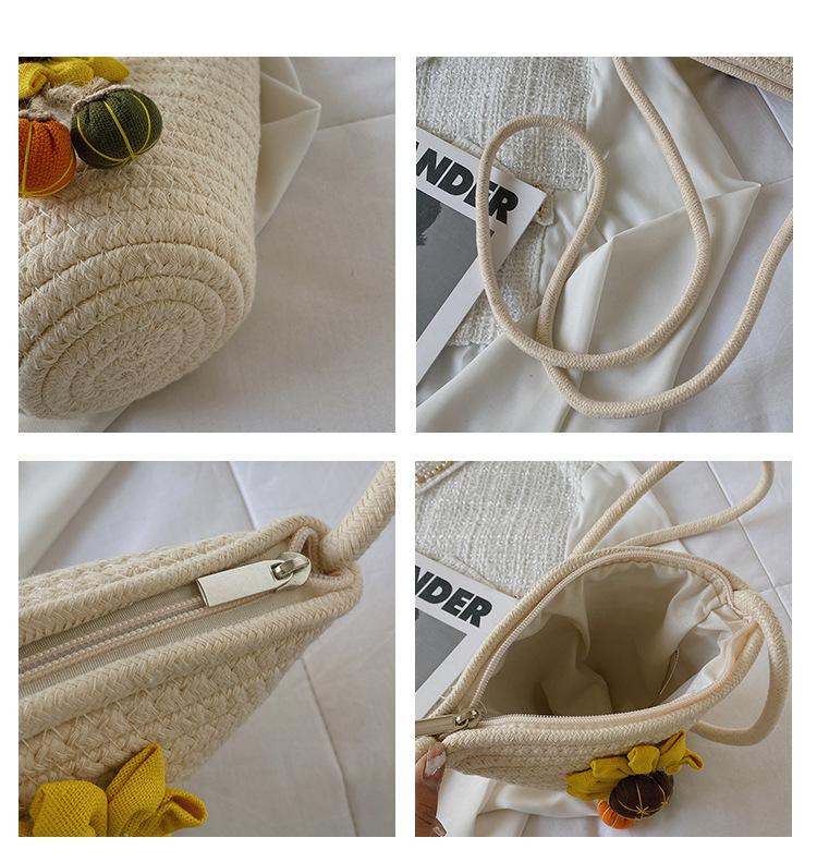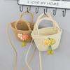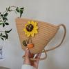 Nova bolsa de palha trançada com flores, bolsa transversal de ombro para praia e férias, mochila feminina pequena de verão