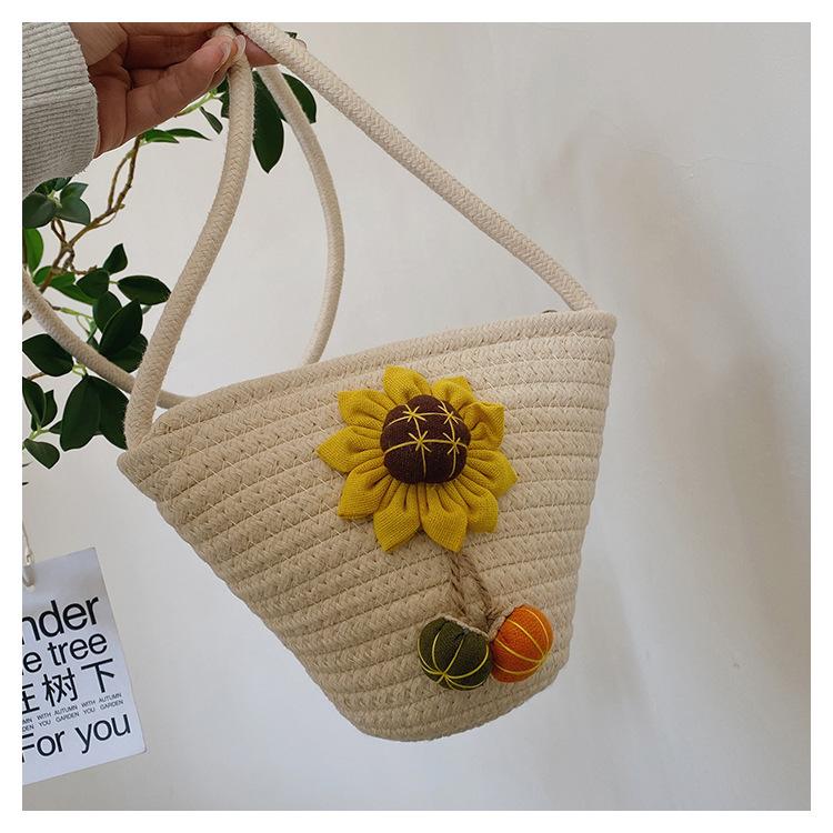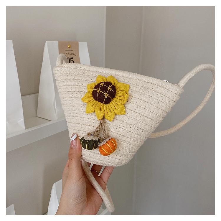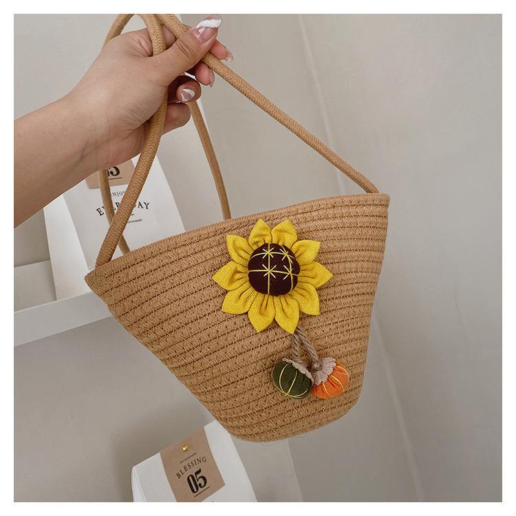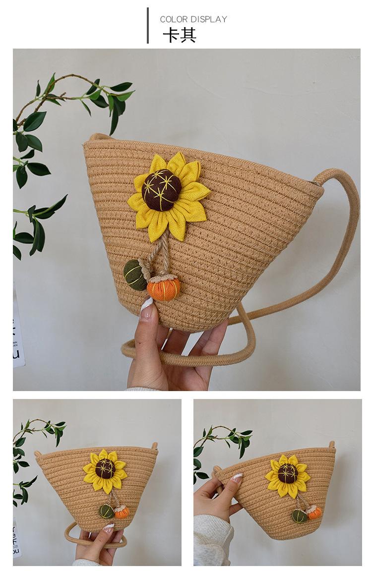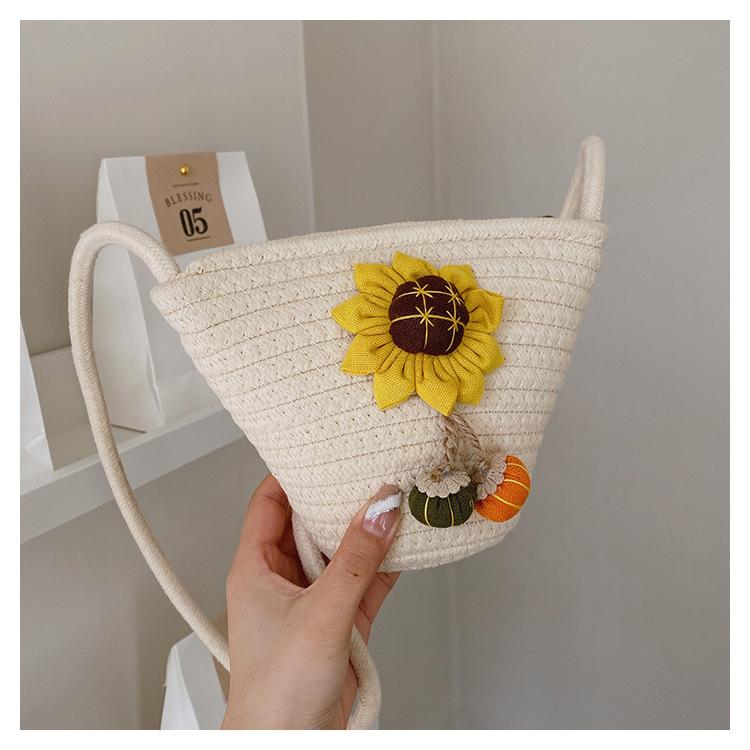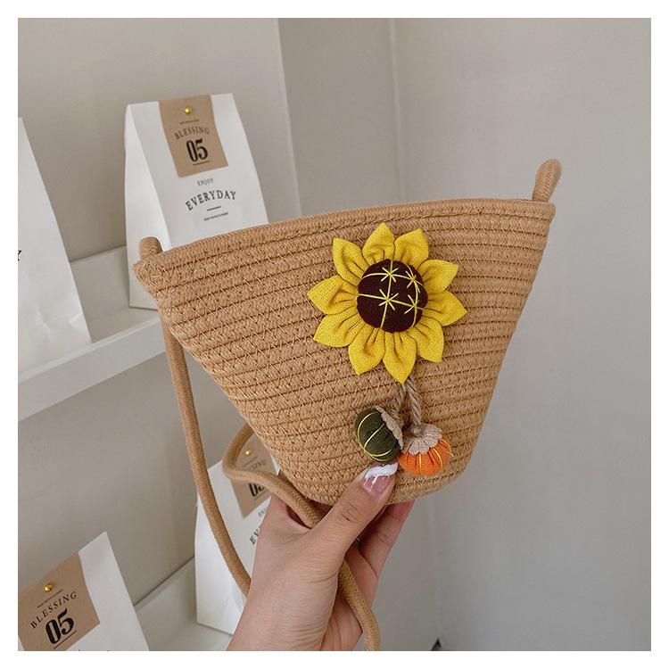 Nova bolsa de palha trançada com flores, bolsa transversal de ombro para praia e férias, mochila feminina pequena de verão