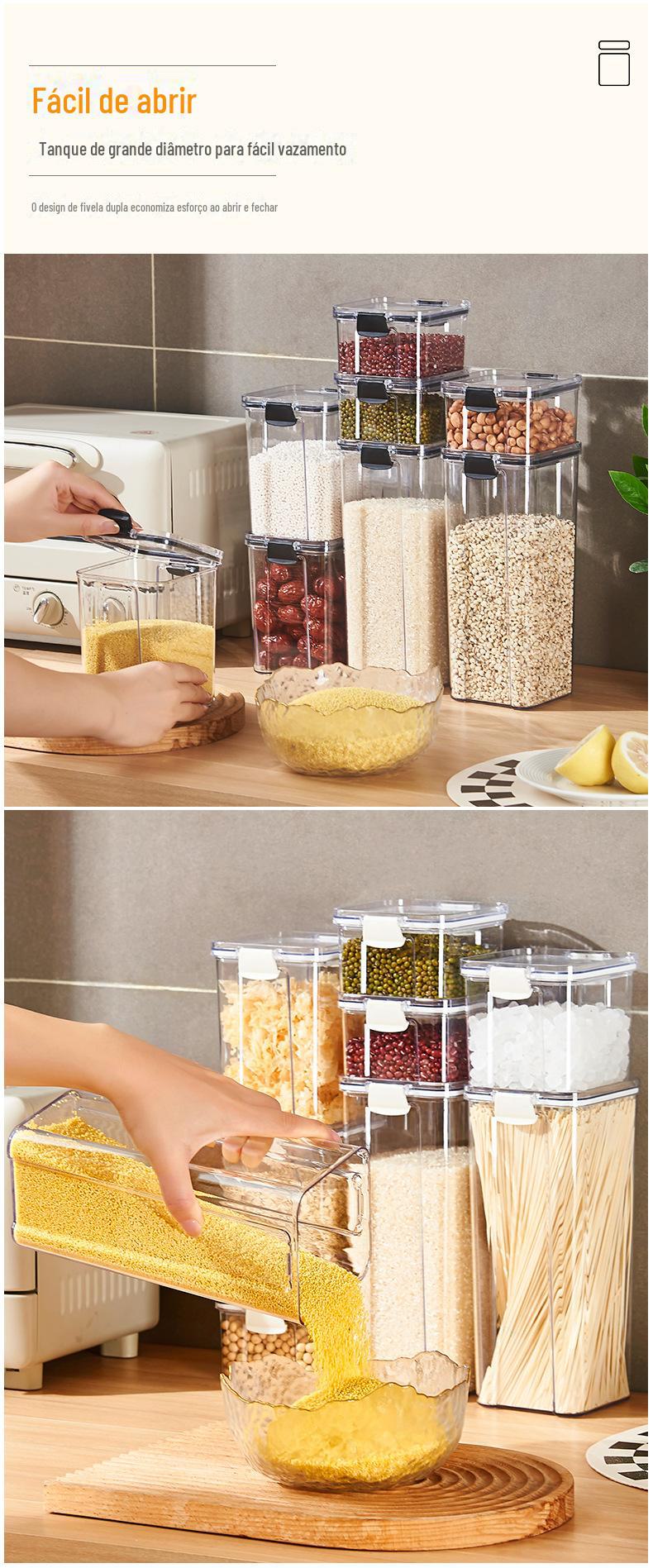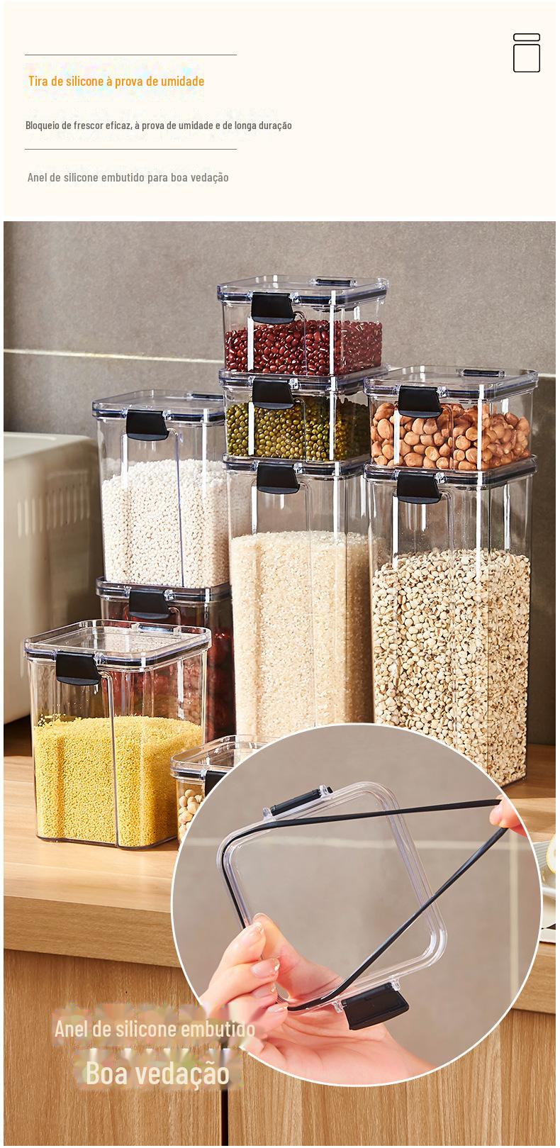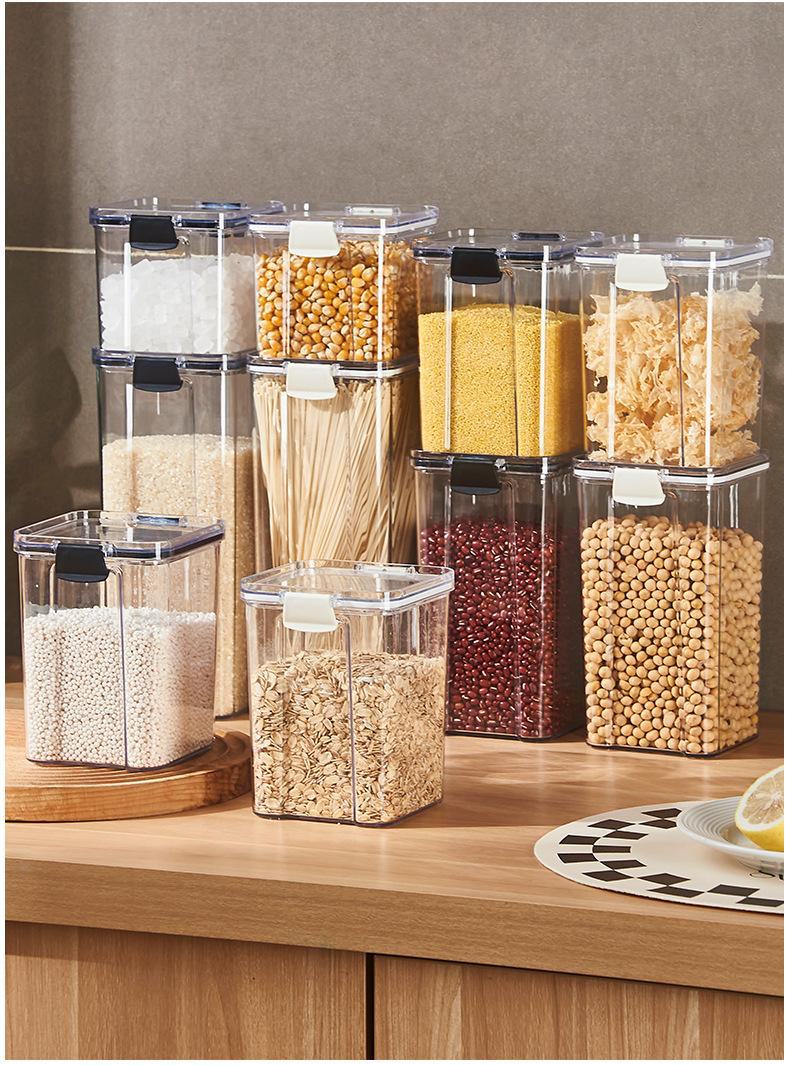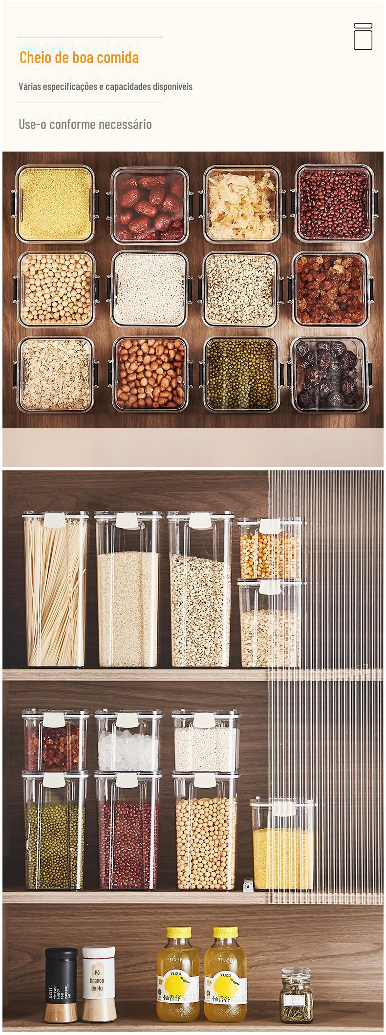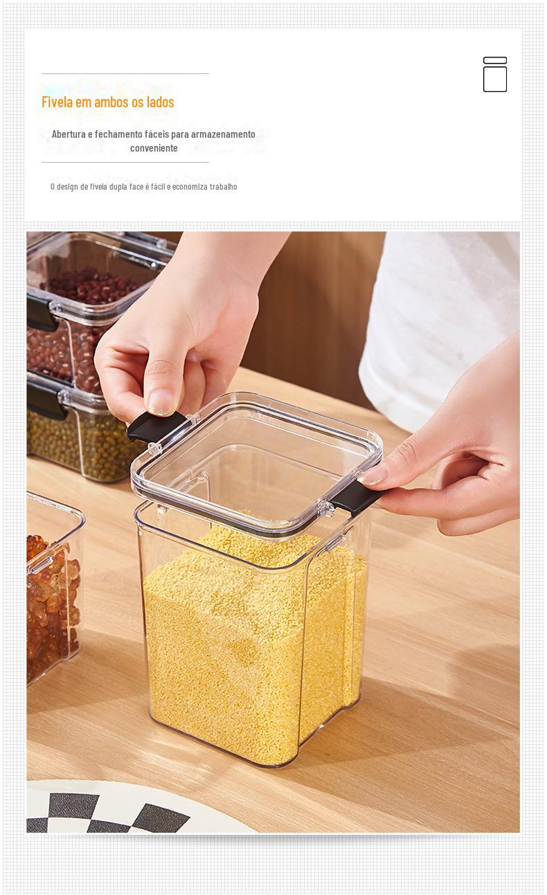 Cozinha Cereal Armazenamento Jar Nut Candy Dry Goods Storage Jar Square Transparent Buckle Dry Storage Jar