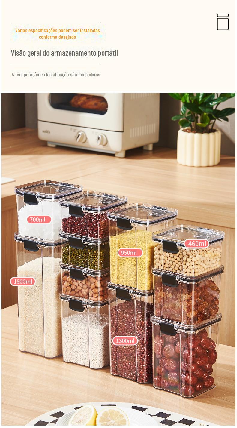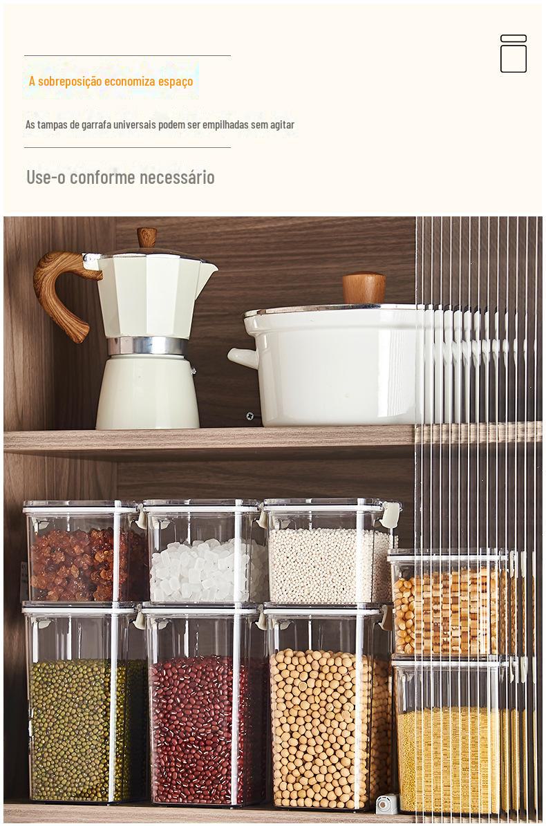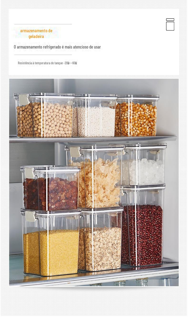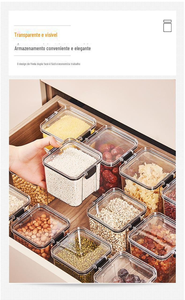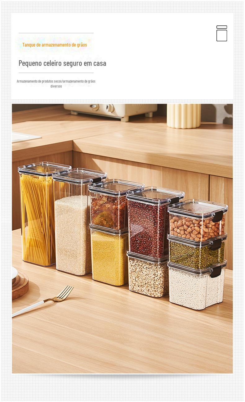 Cozinha Cereal Armazenamento Jar Nut Candy Dry Goods Storage Jar Square Transparent Buckle Dry Storage Jar