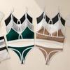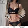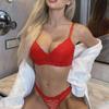 Terno de roupa íntima de renda da moda transfronteiriça, roupa íntima em forma de T, alça de ombro ajustável, sutiã de três fileiras e dois botões, atacado