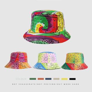 Europeu e americano novo padrão impresso 3d chapéu de pescador tie-dye dupla face bacia chapéu masculino e feminino verão ao ar livre chapéu de sol