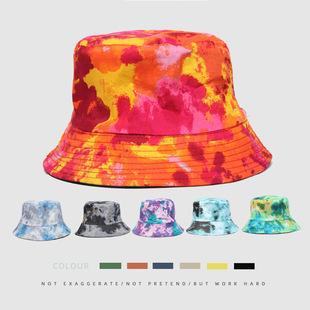 Chapéu de pescador tingido com gravata transfronteiriça, chapéu de dupla face para homens e mulheres, uso externo, viseira de sol, lazer, bacia