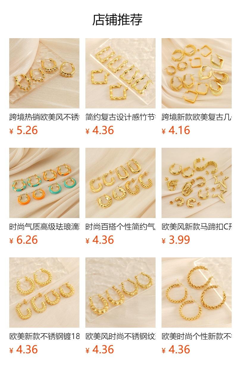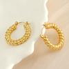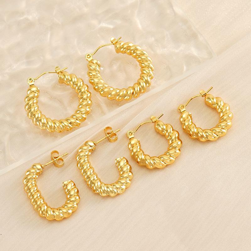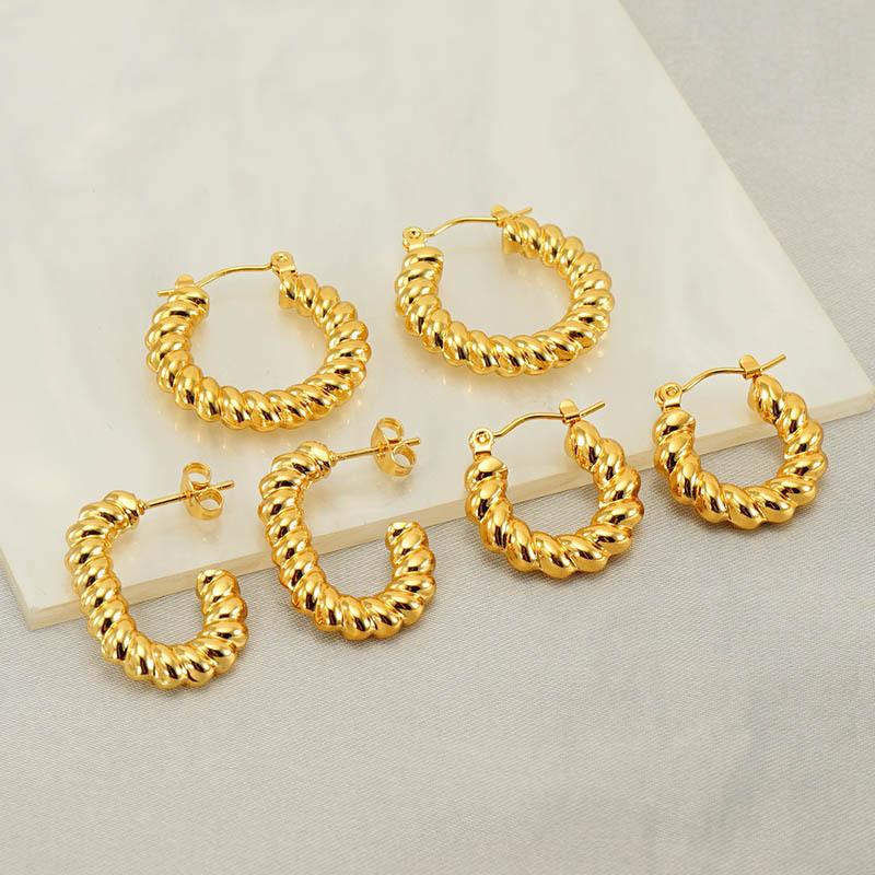 Brincos europeus e americanos novos de aço inoxidável banhado a 18K, brincos torcidos com design de nicho, brincos de aço titânio com padrão espiral