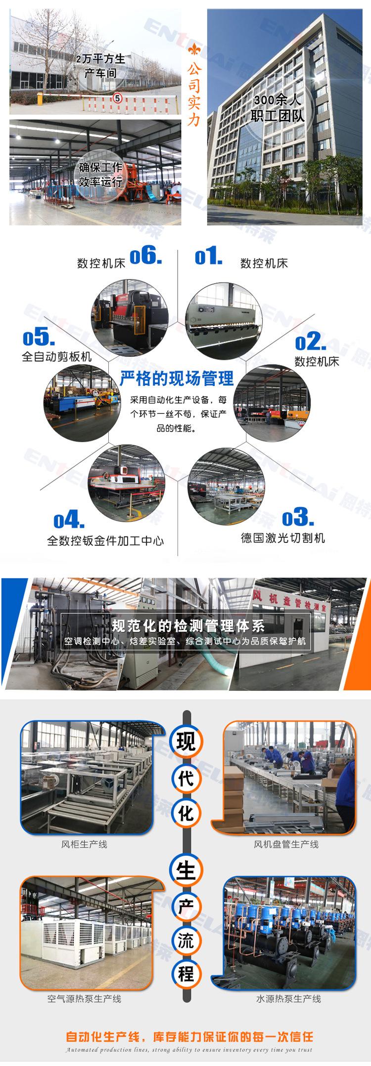 Shandong Entele Air Conditioning Equipment Co., Ltd. - nascido para aquecimento e resfriamento ecológicos! Shandong Entele Air Conditioning Company é um fornecedor geral de soluções para sistemas de ar condicionado. É uma empresa moderna que integra P&D, design, produção, vendas, instalação e manutenção de condicionadores de ar centrais e produtos terminais. É uma empresa abrangente que integra engenharia de ar condicionado central, engenharia de aquecedores de água com energia de ar, engenharia de ar condicionado para salas de informática, pesquisa e desenvolvimento de produtos, fabricação de produtos, serviços completos de engenharia e consultoria técnica.