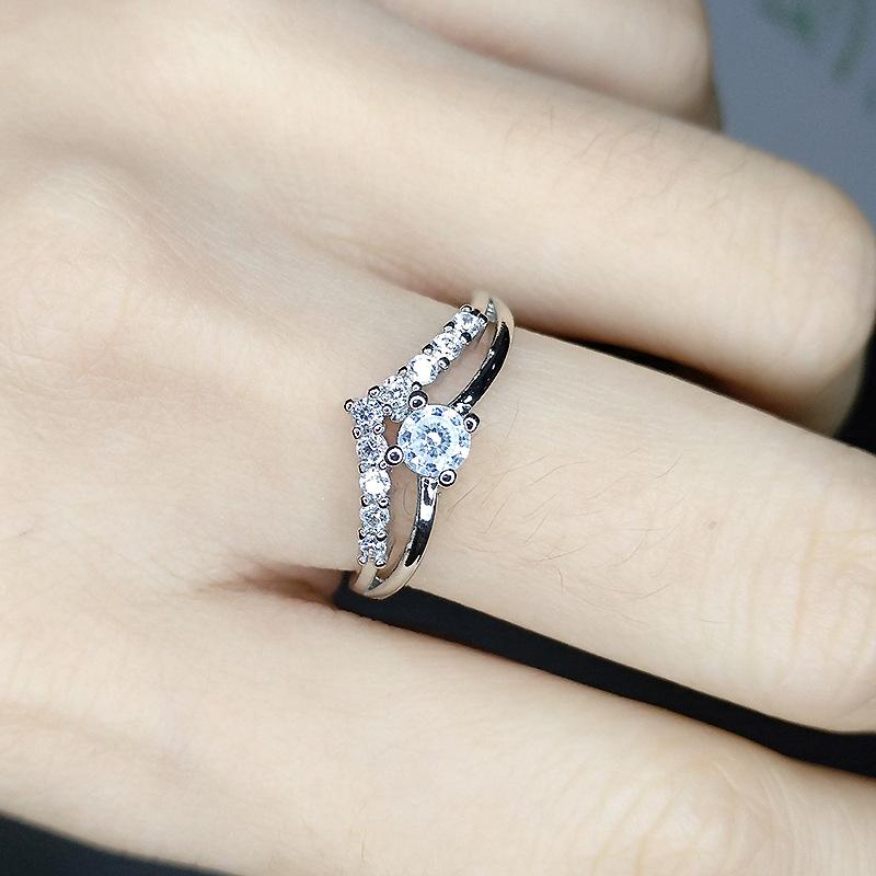 Venda ao vivo imitação moissanite princesa coroa anel diamante duplo platina chapeado ao vivo abertura anel geração cabelo
