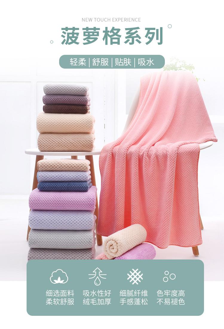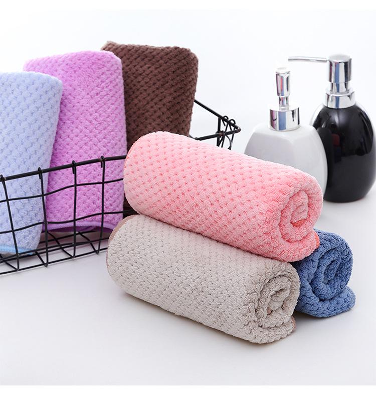 Venda por atacado cor sólida abacaxi coral lã toalha espessa absorvente macio não-fiapos toalha de banho toalha de rosto adulto