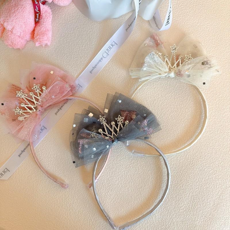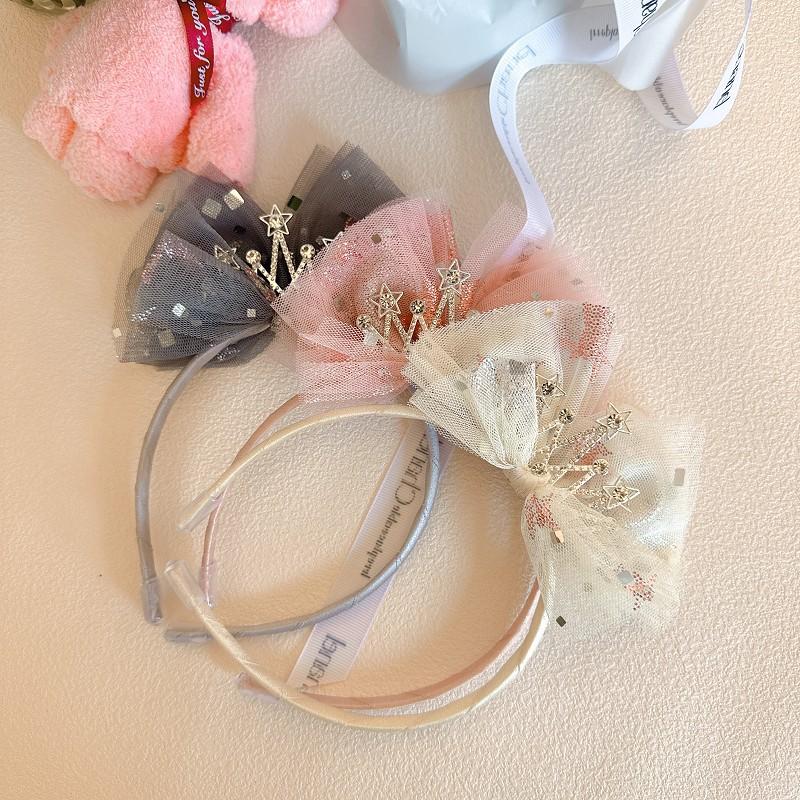 Acessórios de Cabelo Infantil Coreano Laço Coroa Strass Tiara Acessórios de Cabelo para Meninas Presilha de Cabelo de Rede Tiara Pequena Princesa
