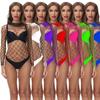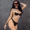 Tentação europeia e americana oca rede de pesca perspectiva sexy lingerie mulheres sexy malha grande livre de macacão malha de manga comprida