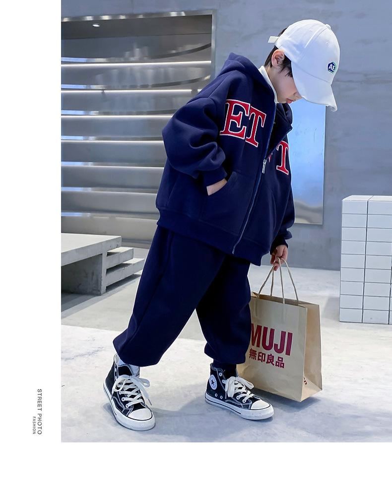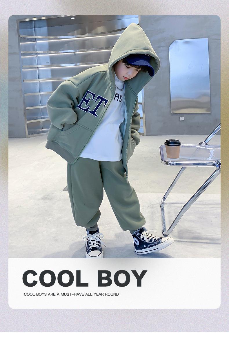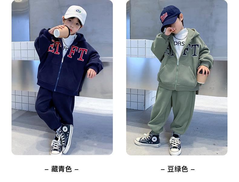 Compre Conjunto de Moletom de Veludo para Meninos Primavera 2025 Novo Infantil Médio e Grande Meninos Estilo Esportivo com Capuz Tendência de Roupa Outono e Inverno no atacado no Joom.pro