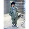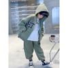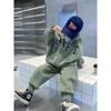 Conjunto de Moletom de Veludo para Meninos Primavera 2025 Novo Infantil Médio e Grande Meninos Estilo Esportivo com Capuz Tendência de Roupa Outono e Inverno