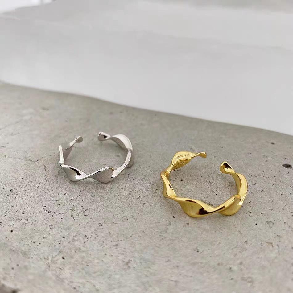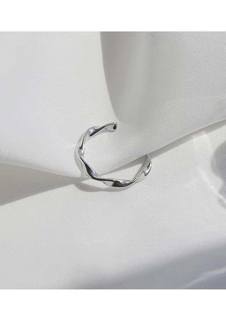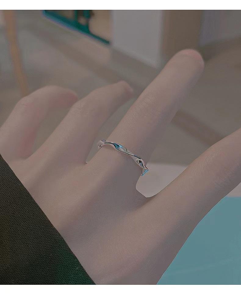 S925 prata esterlina simples Moebius anel torcido nicho abstrato design sentido anel frio moda estilo liso