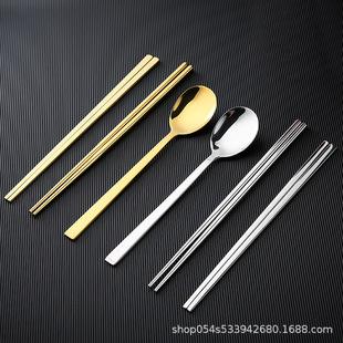 | Conjunto de pauzinhos e colher de aço inoxidável 304 coreano, pauzinhos lisos e planos coreanos, além de pauzinhos retangulares, utensílios de mesa |