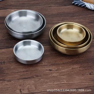 | Placa redonda espessada de aço inoxidável coreano, bandeja de café dourada, prato de bolo de frutas, prato de osso, churrasco, prato raso |