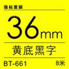 Aplicável fita da máquina de etiqueta irmão 36mm fundo amarelo preto forte filme adesivo PT-P950W/900 papel de etiqueta de impressão