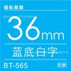 36mm Black on blue background