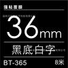 36mm black background with white characters