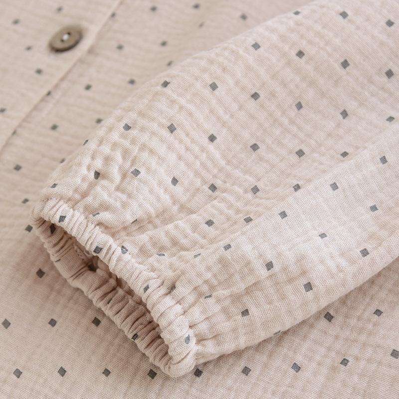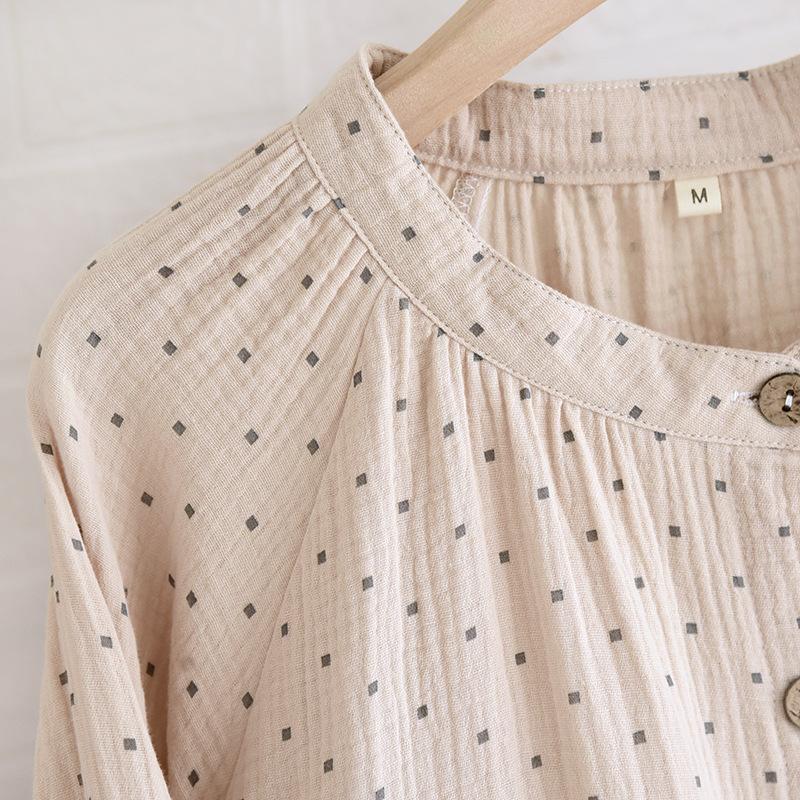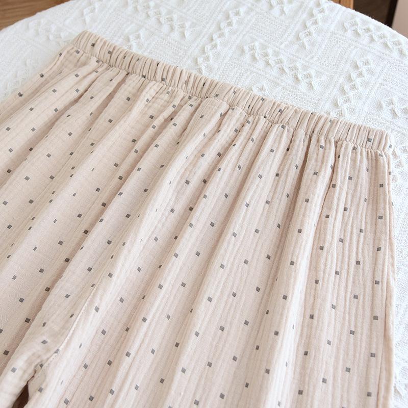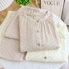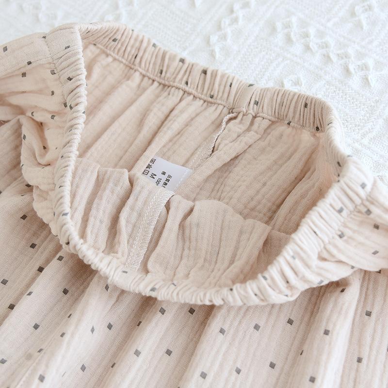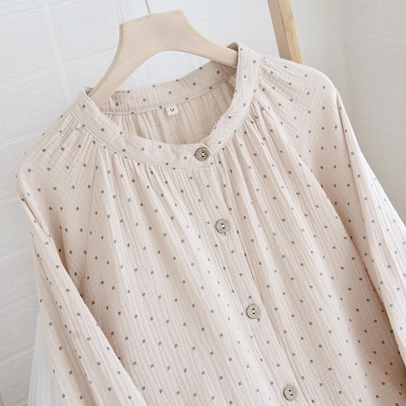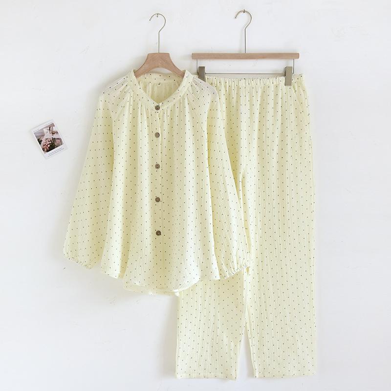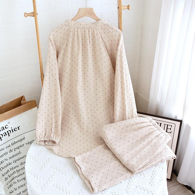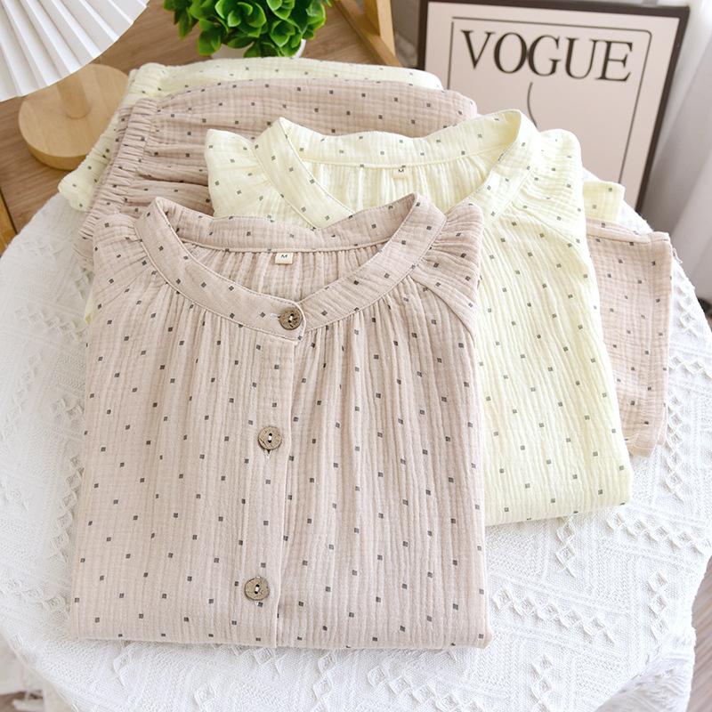 Compre Pijama feminino fino de algodão puro, quatro estações, manga comprida, crepe, gaze dupla, roupa para casa, gola de algodão, terno casual no atacado no Joom.pro
