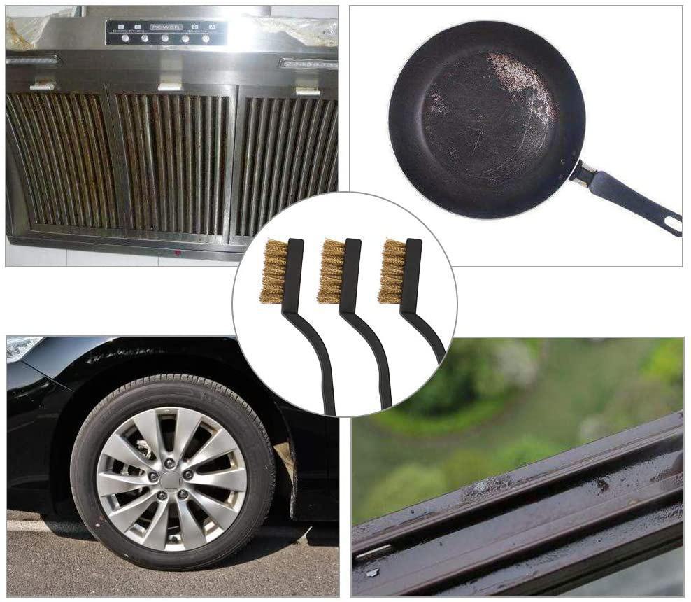 Conjunto de 3 peças de mini escova de arame, limpador de metal contra ferrugem, limpeza de escória de soldagem e ferrugem