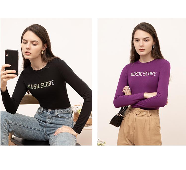 Compre CANVAUS outono e inverno mulheres novo diamante pescoço redondo strass manga comprida camisa de fundo camiseta mulheres uma geração de cabelo no atacado no Joom.pro