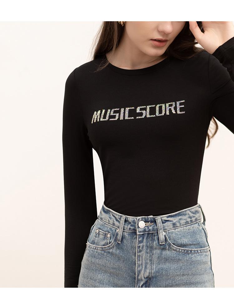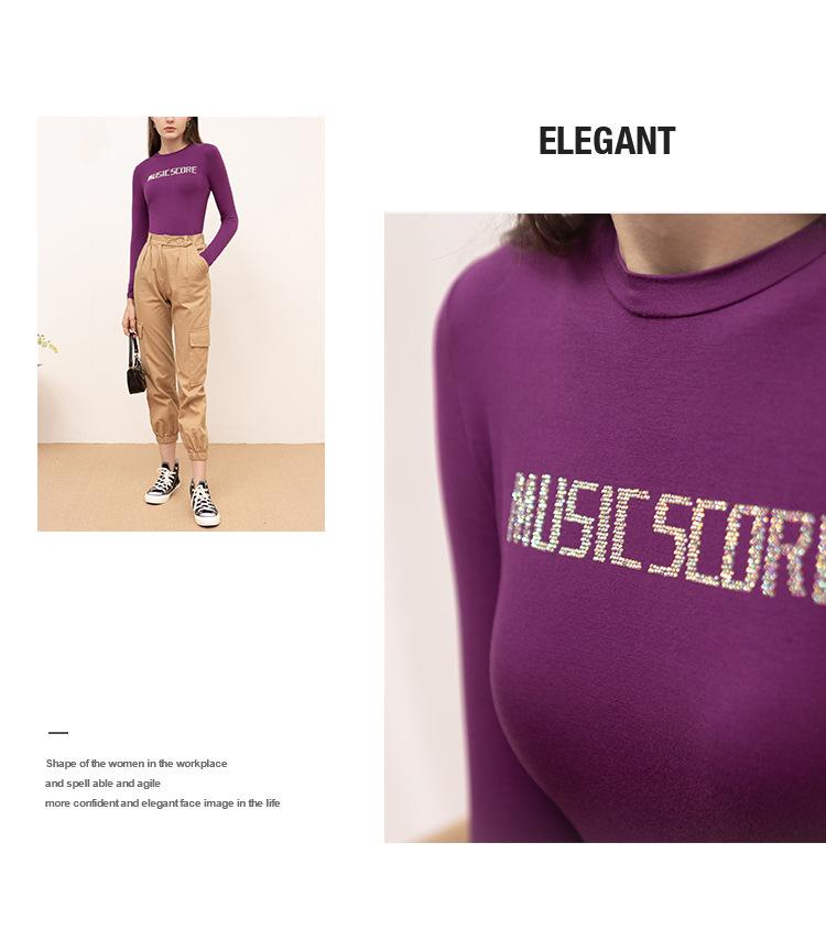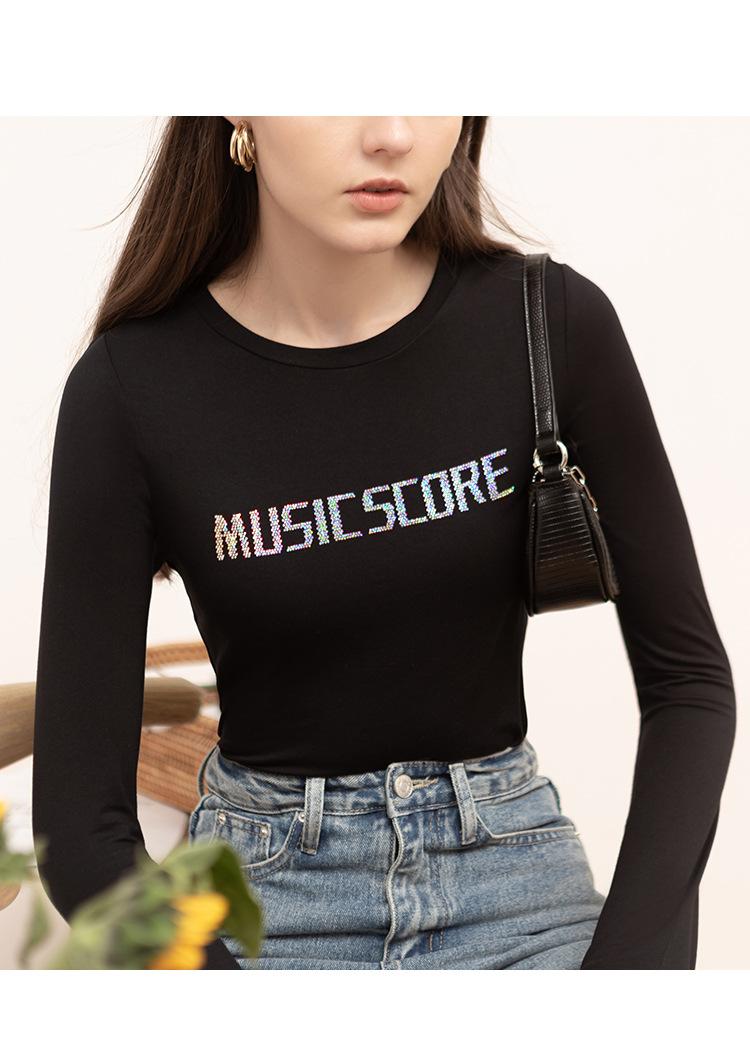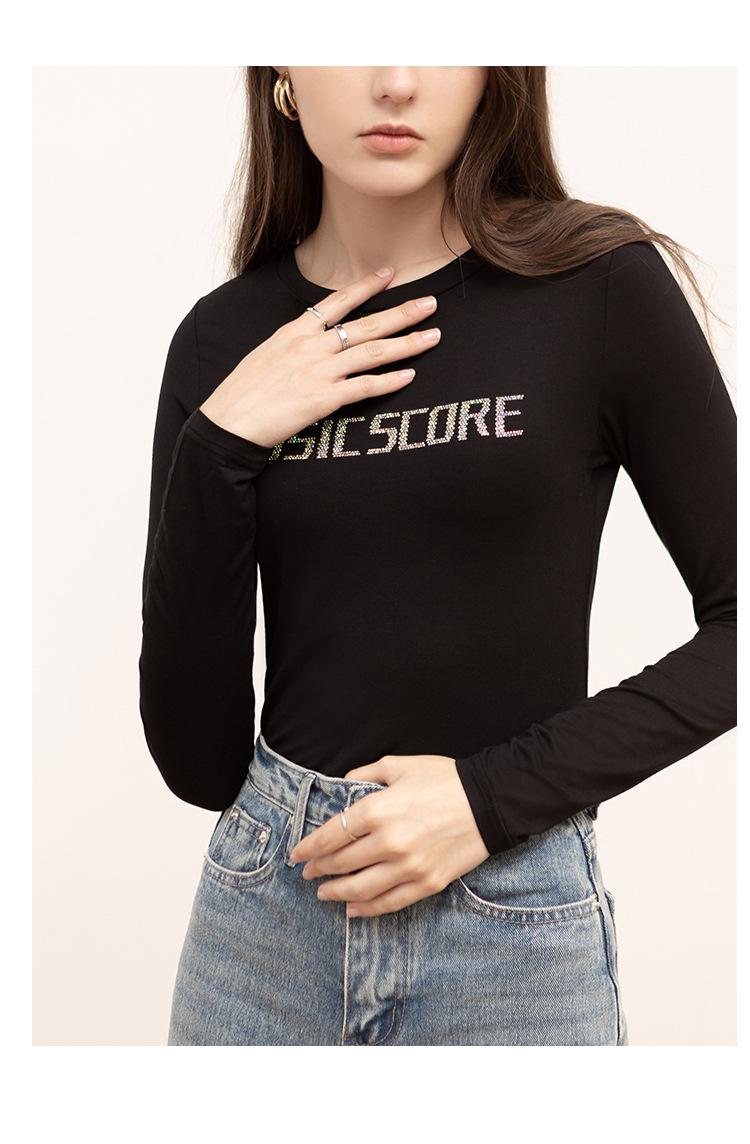 CANVAUS outono e inverno mulheres novo diamante pescoço redondo strass manga comprida camisa de fundo camiseta mulheres uma geração de cabelo