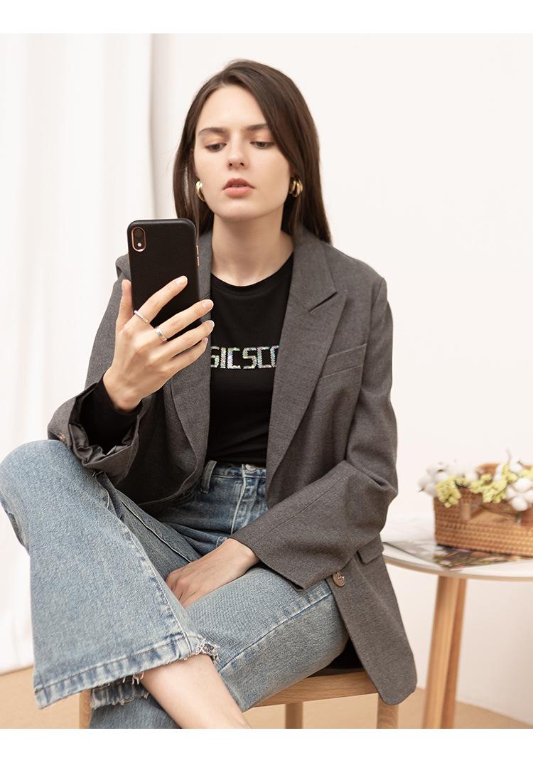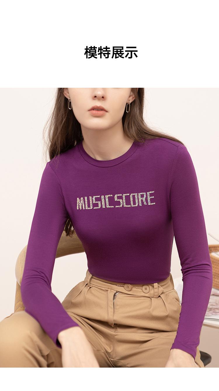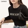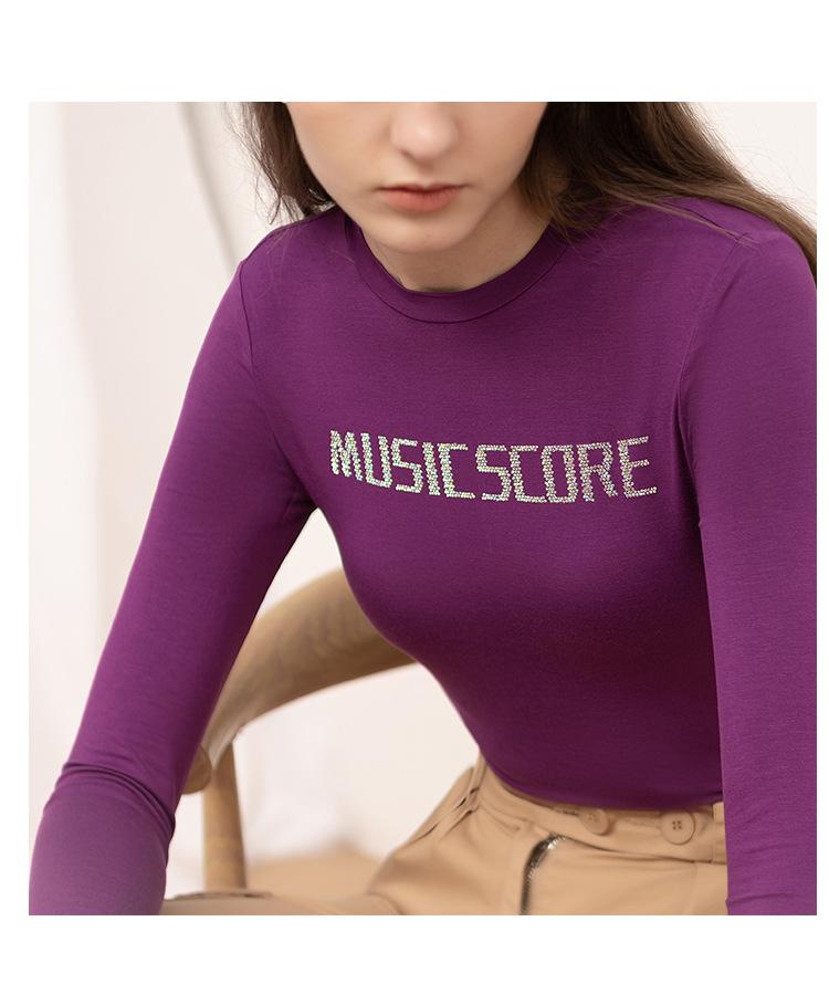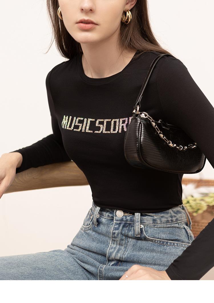 CANVAUS outono e inverno mulheres novo diamante pescoço redondo strass manga comprida camisa de fundo camiseta mulheres uma geração de cabelo