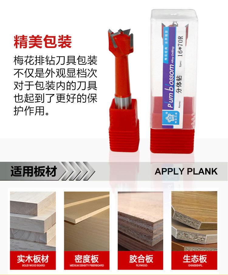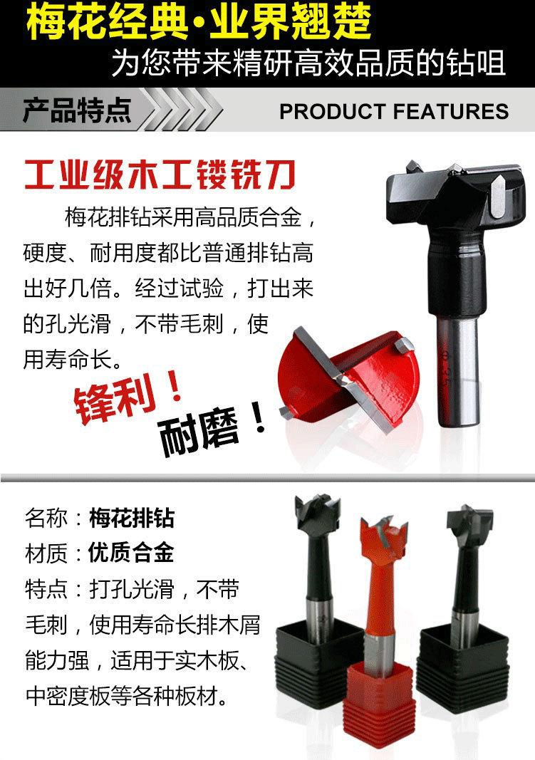 Abridor de furos de madeira de flor de ameixa de quatro lâminas broca de fileira dividida para frente e broca de liga reversa ferramenta de fresagem de furo redondo de placa sólida