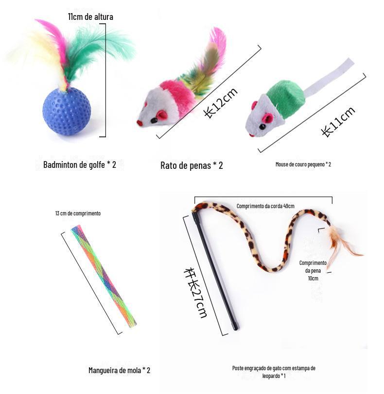 Conjunto de brinquedos para gatos transfronteiriços, brinquedo para gatos, bola de sino, pena de primavera, vara de gato, ponto roxo, túnel de gato