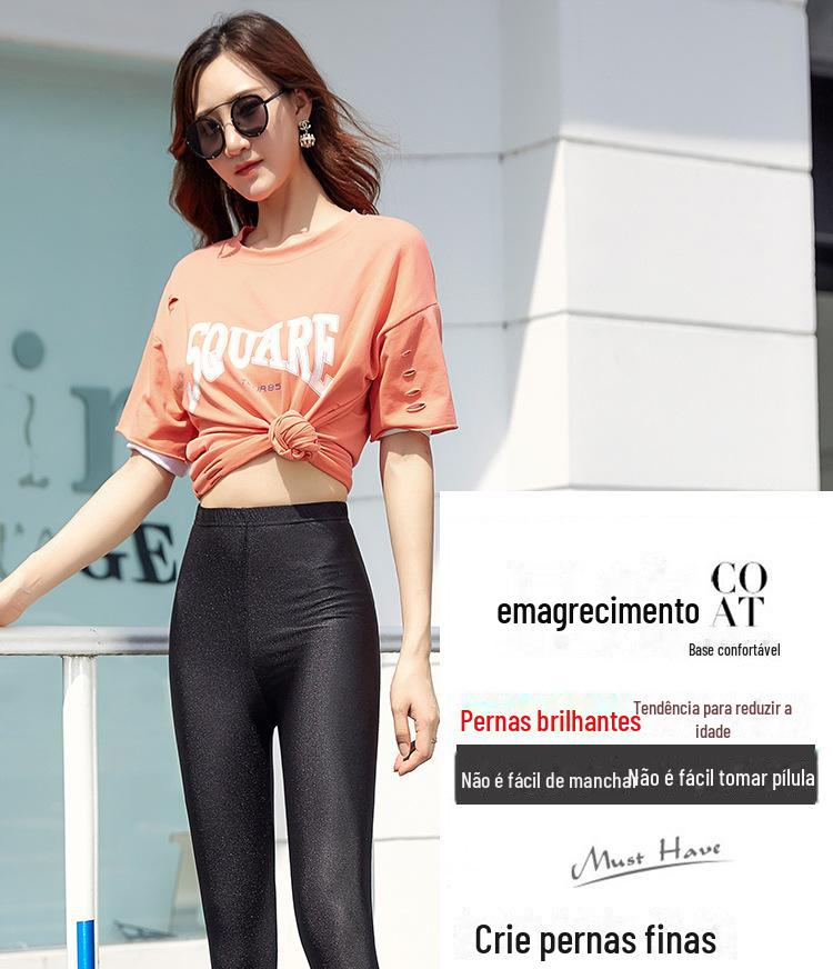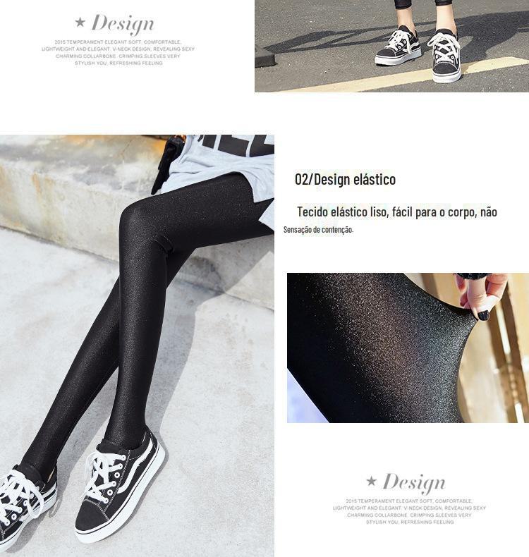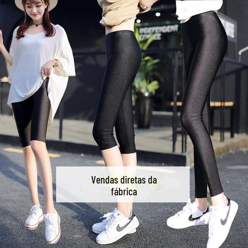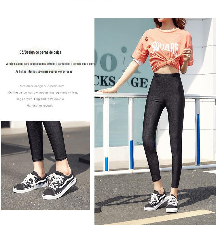 Outono e Inverno novas calças elásticas brilhantes nylon slim-fit flat tornozelo comprimento cropped leggings pedal Calças Fábrica Fornecimento Direto