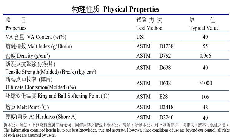 Propriedades físicas do EVA Taiwan Taiju UE4055