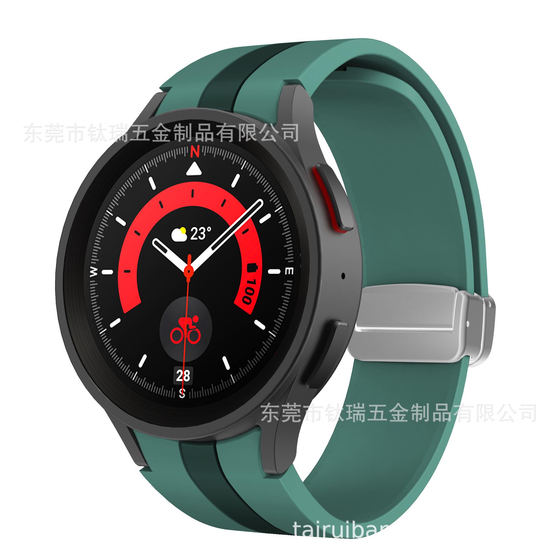 [Nome do produto] Adequado para Samsung watch5Pro pulseira de relógio de silicone watch5/4 listrado de duas cores com fivela magnética dobrável pulseira de relógio de silicone