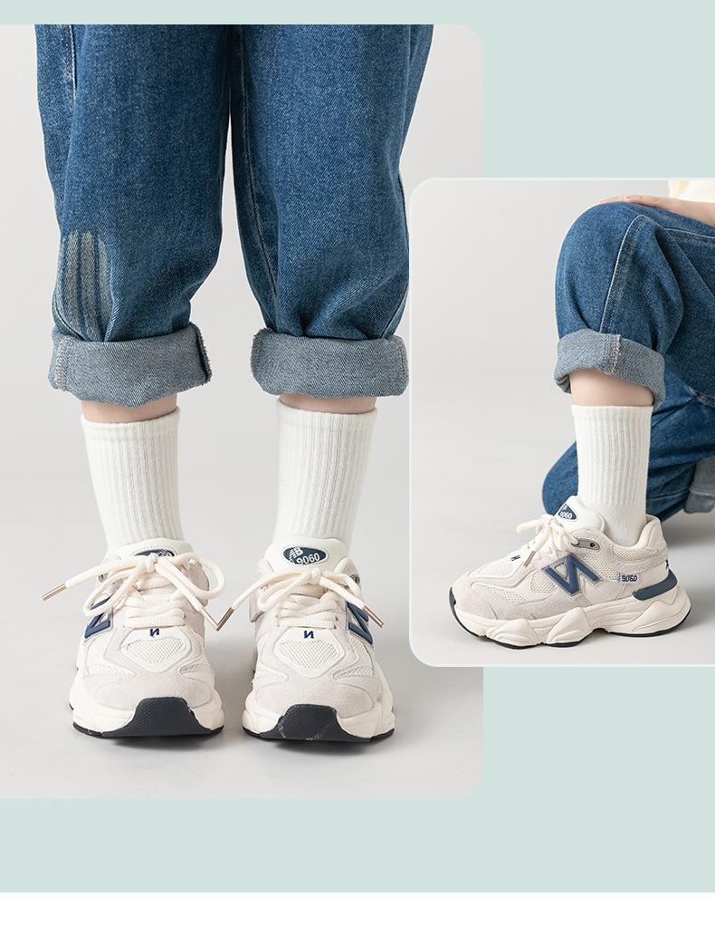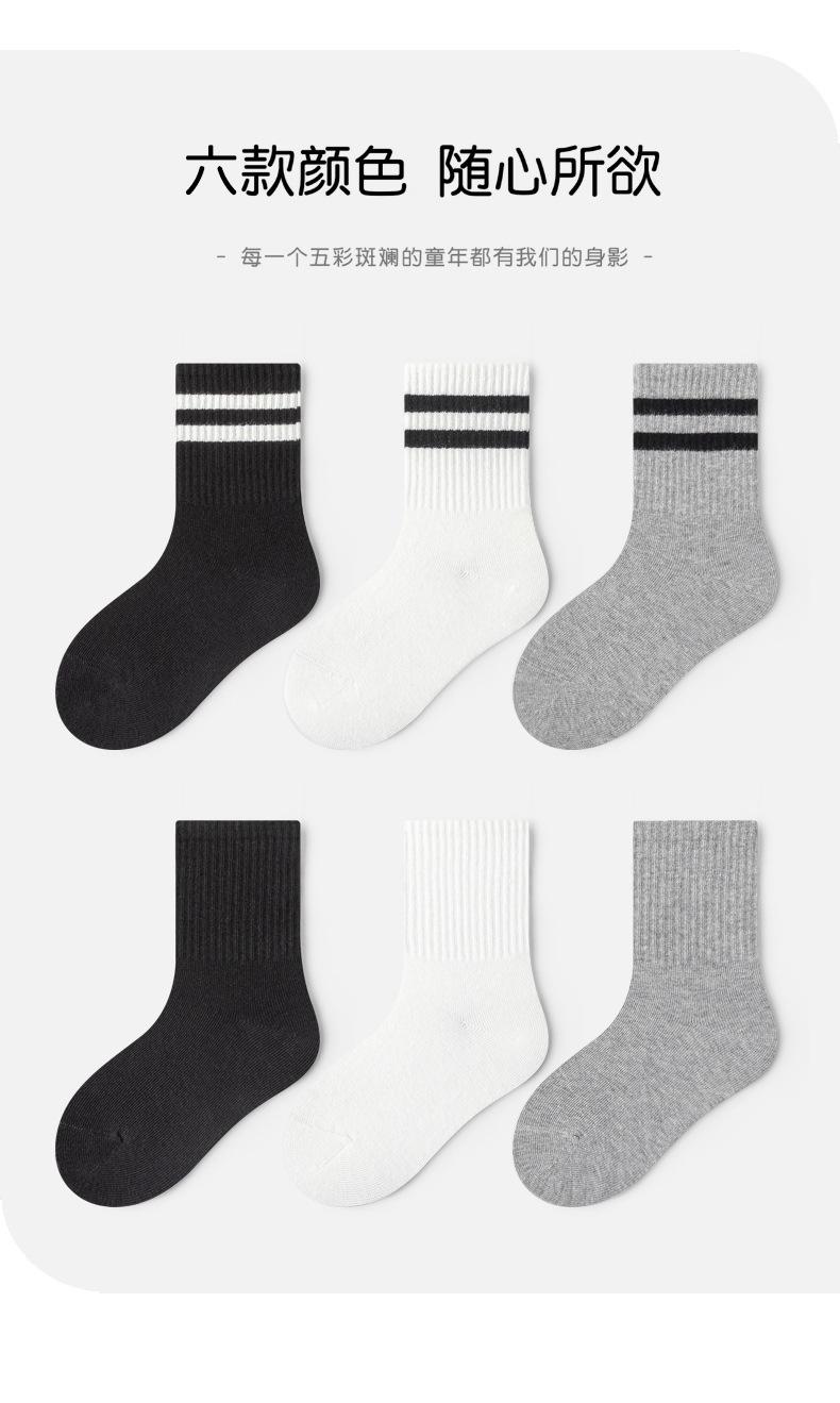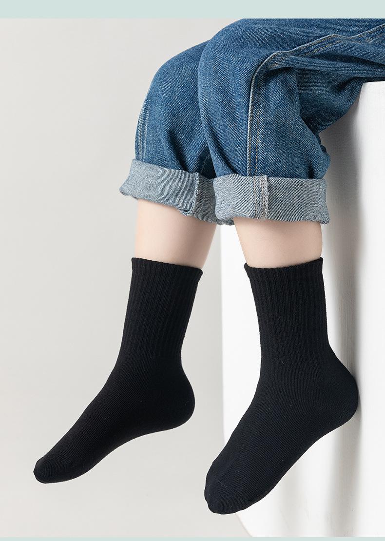 Meias Infantis Preto e Branco Algodão Estilo Preppy Meninos e Meninas Meias de Estudante Algodão Puro Respirável Anti-Pilling Cano Médio Meias de Algodão Infantis