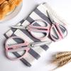 Tesoura doméstica aço inoxidável tesoura rosa artesanal papel corte linha corte cozinha frango osso corte papelaria pequena tesoura