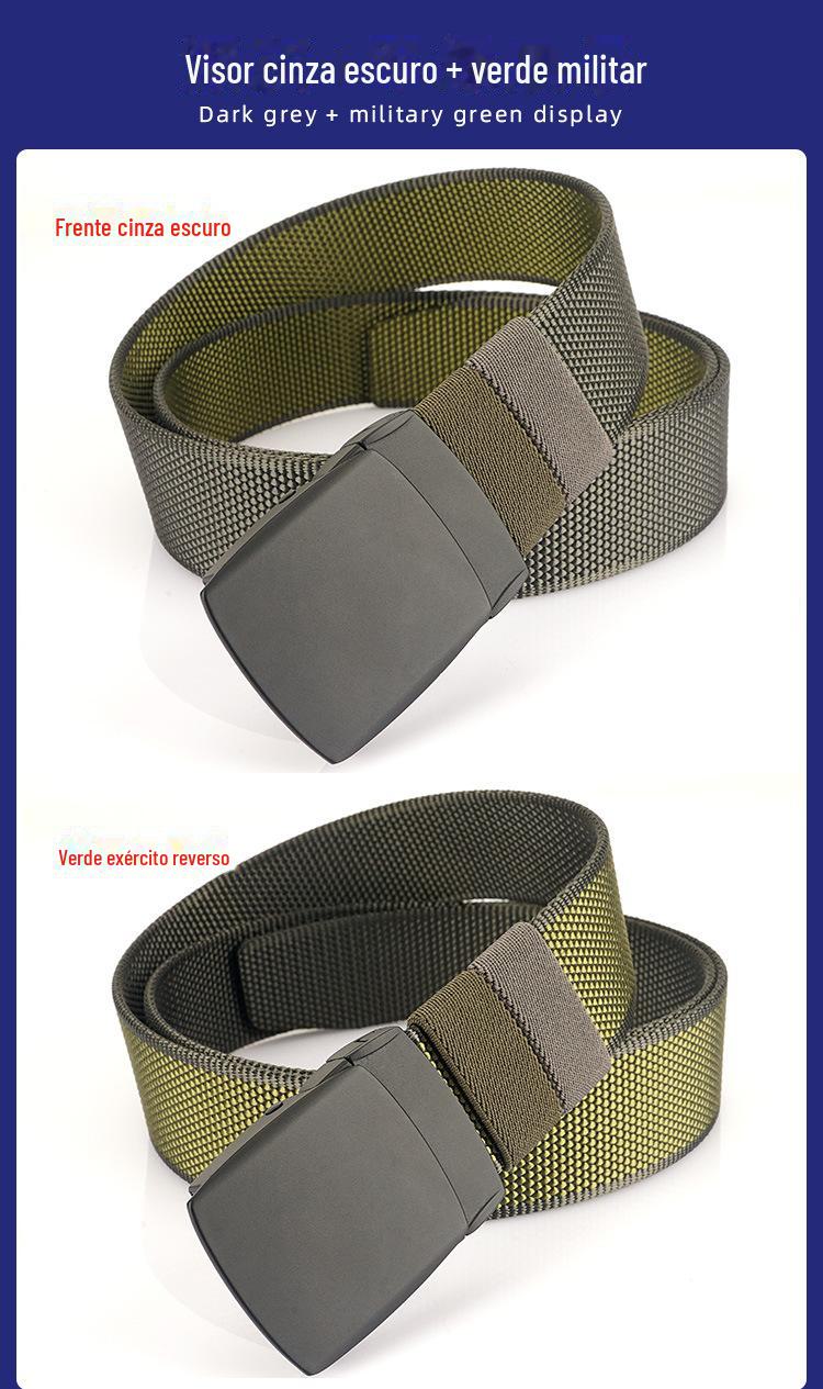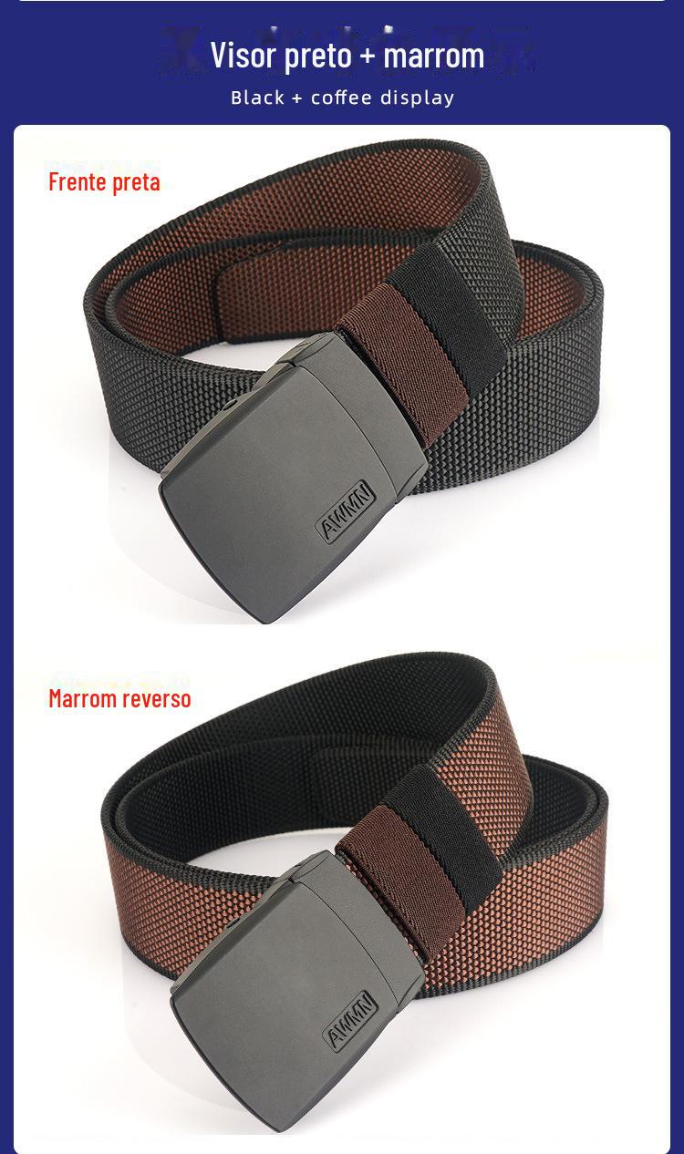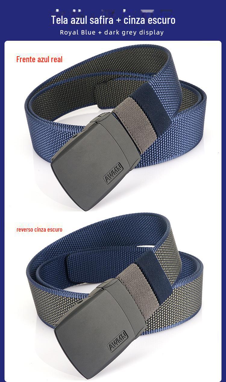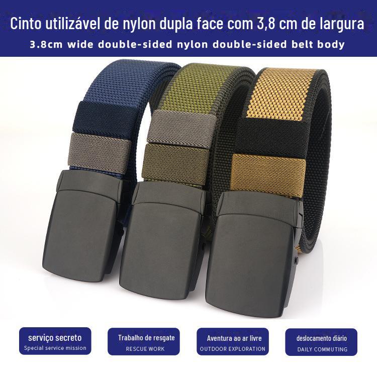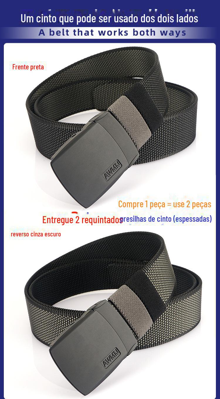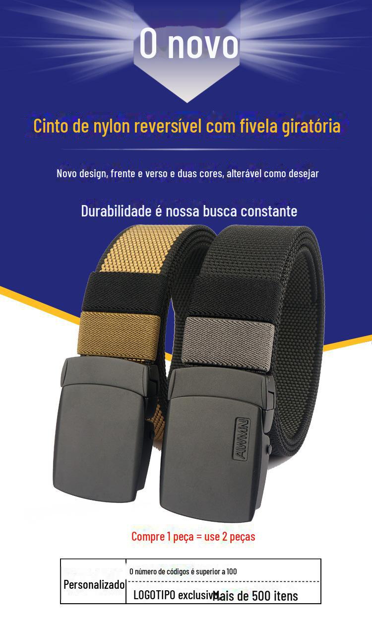 Novo botão rotativo duplo cor de lona de dupla finalidade cinto de nylon masculino e feminino casual all-match conveniente mudar cinto