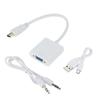 Suporte para áudio e vídeo Full HD Resolução de até 1920x1080 incluindo 720p, 1600x1200 Compatível com a maioria dos monitores VGA; a porta de áudio integrada no adaptador é conectada aos alto-falantes do monitor VGA em estéreo por meio de um cabo estéreo; nenhum driver de software externo é necessário