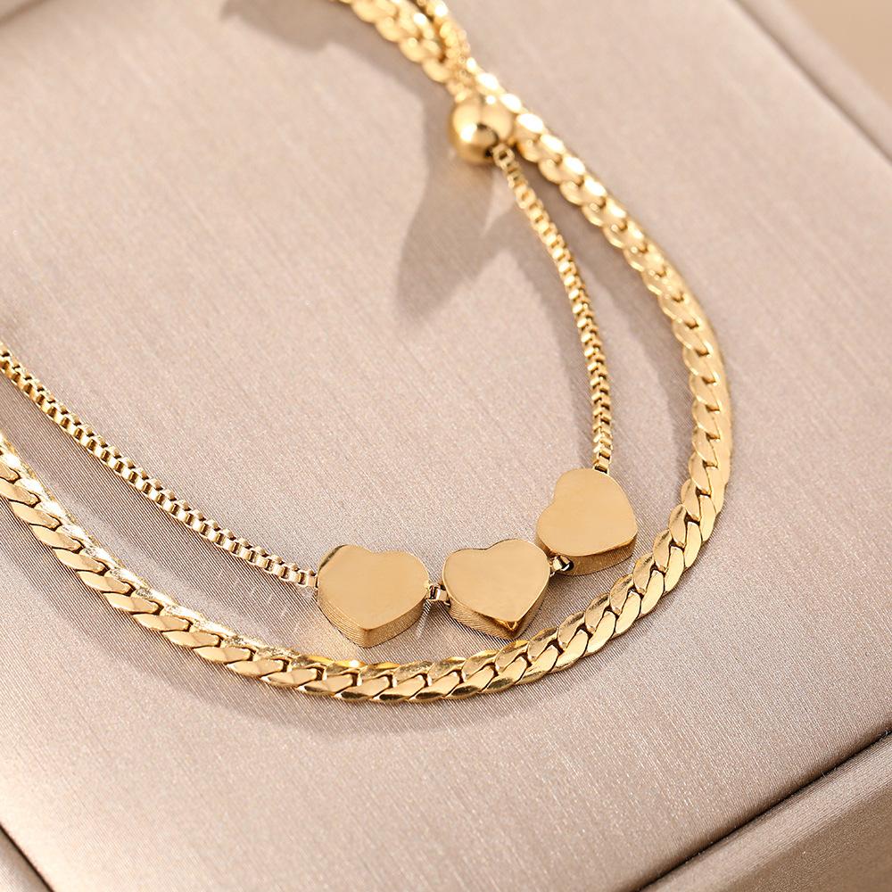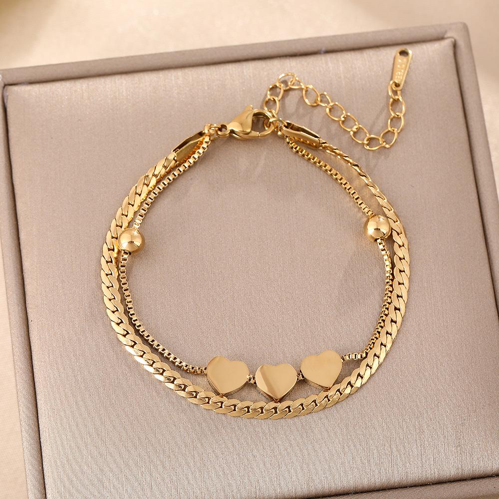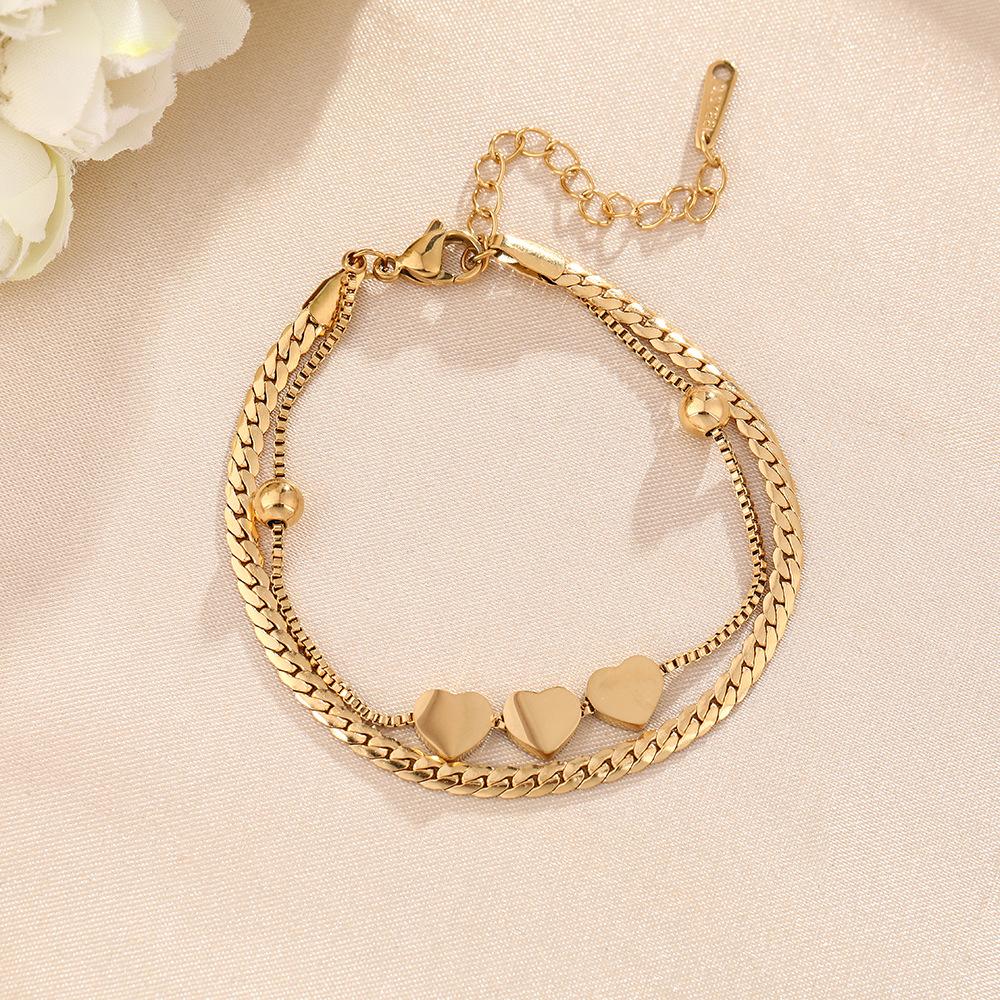 Pulseira de aço titânio de alta qualidade coração amor luxo leve dourado design de nicho ins enrolamento em camada dupla joias Net Red feminina hipster