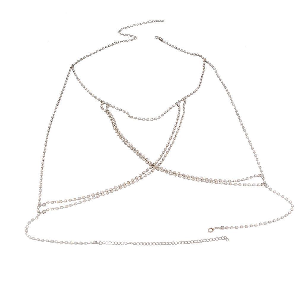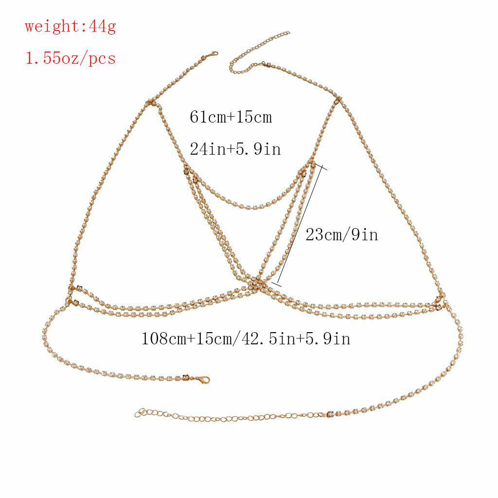 Joias de moda transfronteiriças europeias e americanas, novos elementos populares, sexy, exagerada, flash, diamante, corrente no peito, corpo, roupas, colar para mulheres¥7Compre agora