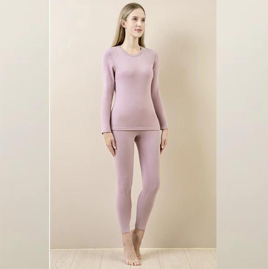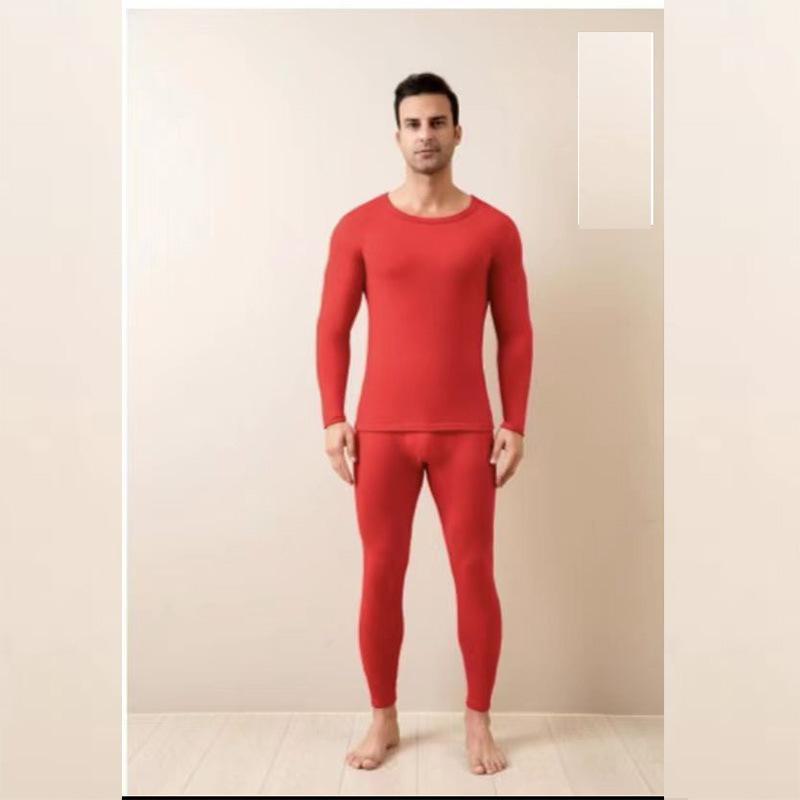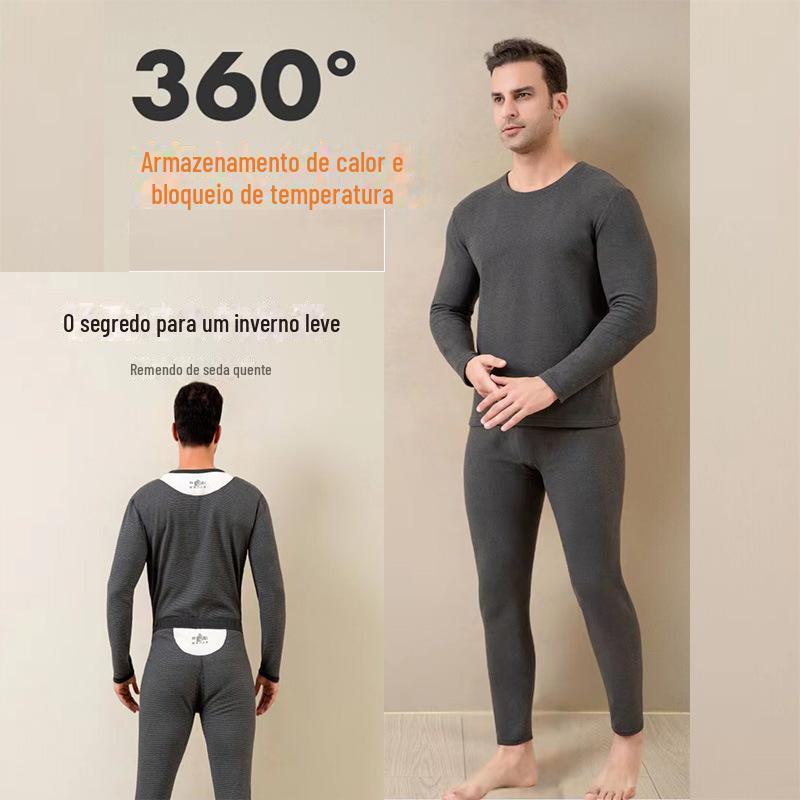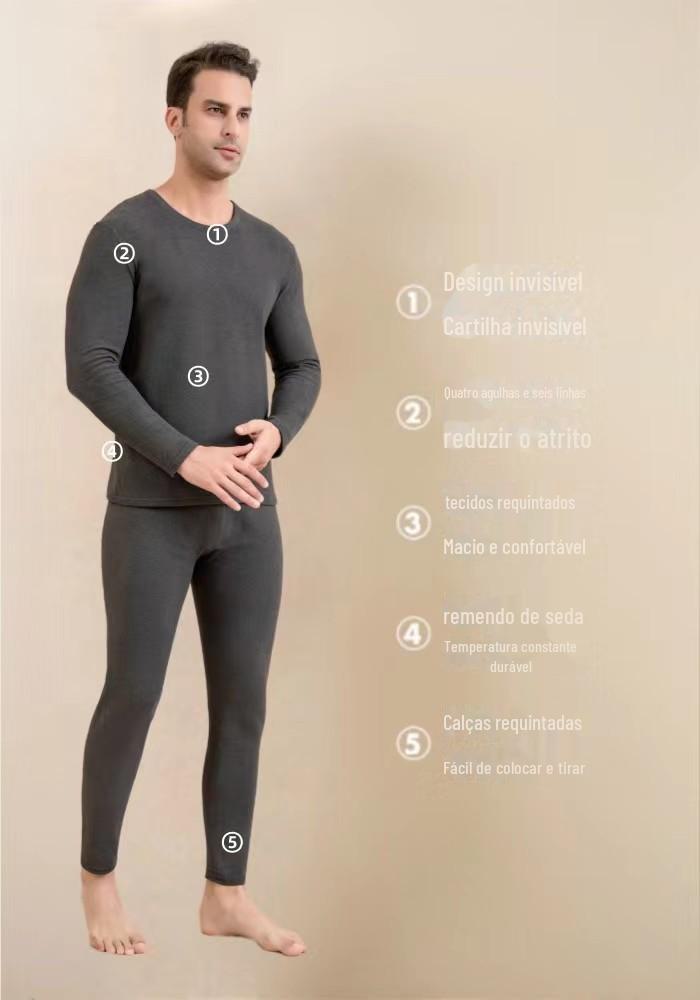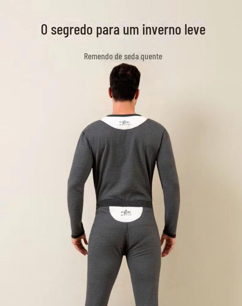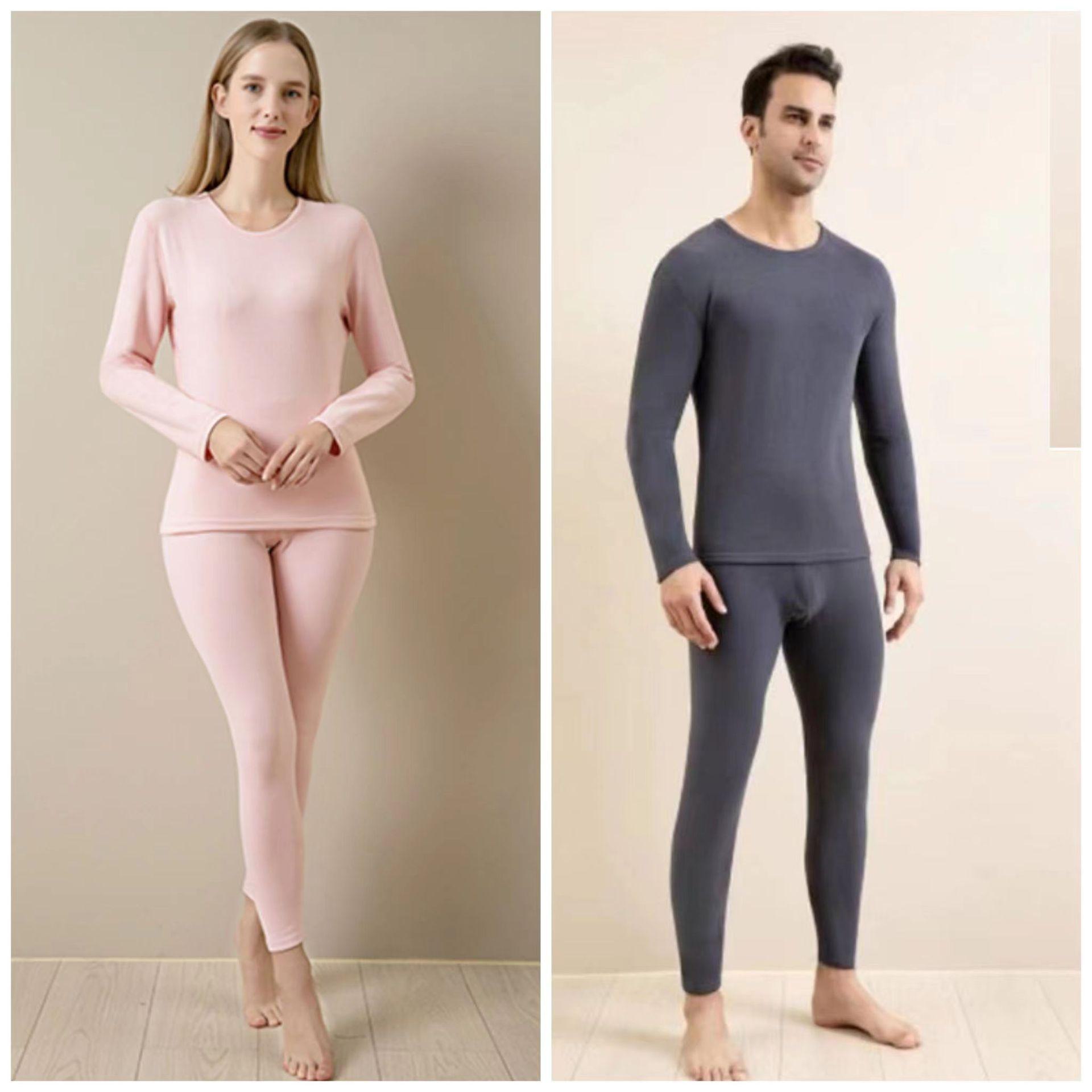 Conjunto de Roupa Íntima Térmica de Lã de Seda com Patch Gola Dupla Face AB para Casais Masculinos e Femininos Roupas de Outono Atacado à Prova de Frio